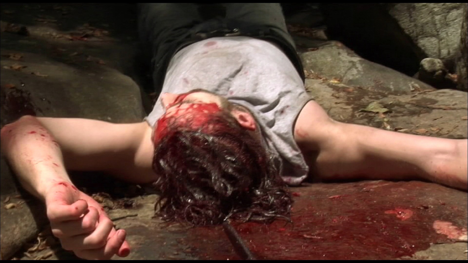 homicidal maniac whose hemophilia causes him to shed blood while he lurks around in the sprawling abandoned estate he's taken over. One by one, they... well, you know the drill. Though low on actual gore despite the title, this is high on kitsch value with the lookalike band members getting chased around in the woods while still wearing their performing outfits. As you'd expect it's technically rough and devoid of any artistic value, but that's a given.