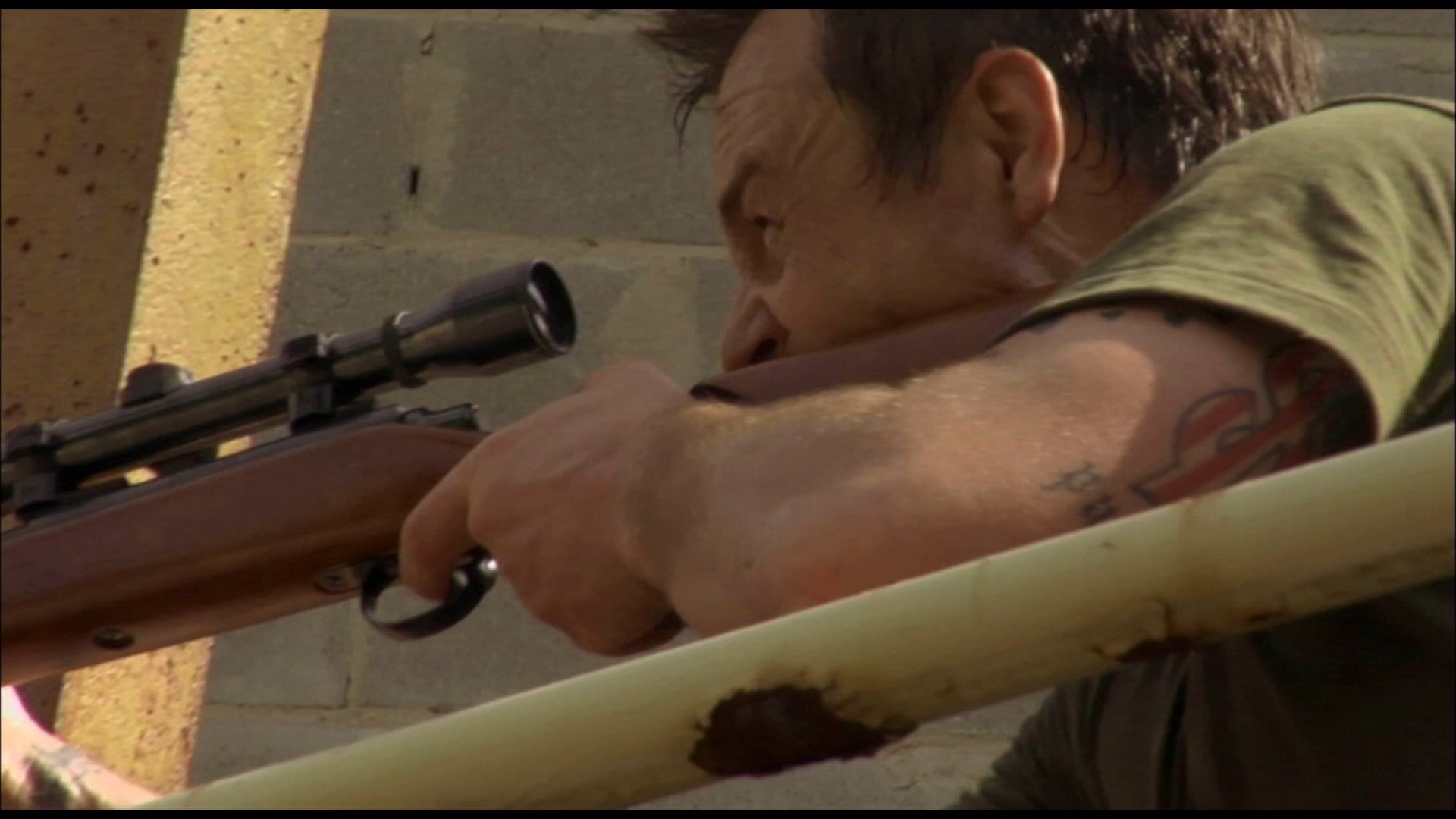 an unseen sniper. Fighting for their lives and with their number dwindling, they have to use their wits and any remaining physical strength to survive. Very spare and simple, this one is, as you'd expect from this point in the director's career, very languid and chatty for the initial stretch but then bursts into an effective survival story. Shot on standard def miniDV in one week with very little funds, it's obviously far less polished than what was to come but has some effective atmosphere and a good knack for building suspense. The premise feels a bit like a partial, stripped-down riff on the now long-unseen 1976 Canadian film Shoot, which oddly enough made entertainment industry news very recently when it was plagiarized for the Apple series The Hunt from France.
