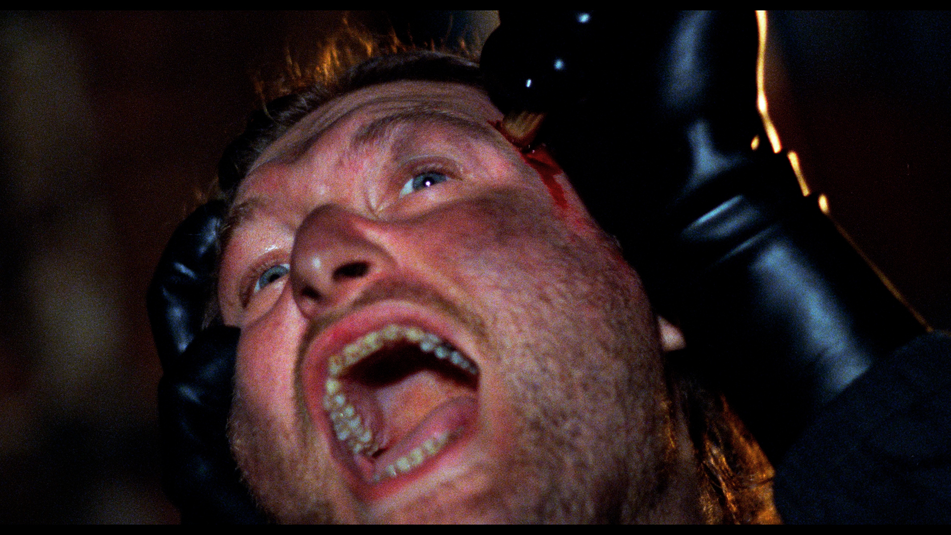 The commentary and all five featurettes from the Scorpion release are ported over here, and six substantial new featurettes are added as well. "Still Awake" (15m15s) with Caselli has her chatting about reuniting with onetime boyfriend Dionisi, her previous work with him, her memories of the "reserved" Von Sydow, the honor of appearing with Falk, and her thoughts on acting in English or French versus Italian. In "The One Who Saw" (9m36s), Dionisi covers making this film after a previous one with Argento didn't pan out (The Stendhal Syndrome since he didn't want to get crushed with a car hood!), his positive memories of his fellow actors, the status of the dwarf as the "real star," his thoughts on the horror genre, a supernatural rumor that emerged on set, and memories of the effects engineering by Sergio Stivaletti and Ronnie Taylor's cinematography. In "Behind the Smile" (16m59s), Zibetti (who somehow looks exactly the same) discusses growing up in Turin, his familiarity with Argento, his own aversion to horror, his prior key roles, and his approach to his character with direction ranging from calm tea chats to talking about "brain chunks." "The Invisible Work" (25m9s) with editor Anna Napoli covers the process of going through the dailies with Argento and Taylor, the director's surprising squeamishness during the nail-cutting scene, the calibration of image with the music and sound effects, and the execution of that carpet sequence. In "One Last Score" (21m39s), Claudio Simonetti goes into his final go-round here with Goblin, the Turin location a la Deep Red that inspired the idea of bringing the band back together, the story behind that short-lived reunion, and his general musical collaborations with Argento before and after this film. Finally in "Bloodwork" (19m54s), Stivaletti is interviewed about his working methods with Argento, the experiments he made on this film, the creation of multiple head casts to get mistreated on camera, the mixture of digital and practical effects for one show-stopping moment, and his involvement in non-gore effects like the opening torrential rainstorm. It's worth noting that several of these interviews are peppered with some great making-of footage, too.VINEGAR SYNDROME (UHD)