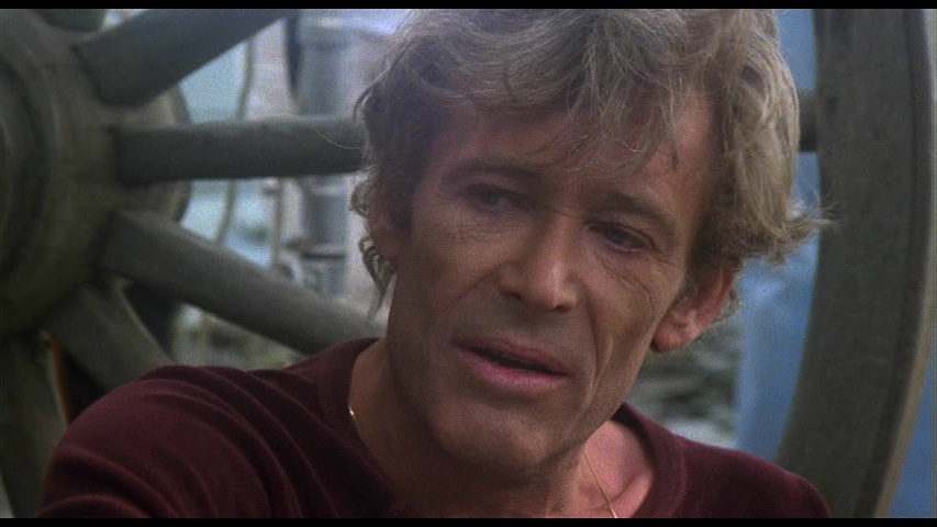 thorough gallery of stills and promotional art (including some nice preliminary drawings), filmographies, a DVD-Rom version of the screenplay, and a choppy but interesting commentary track which alternates between Rush (who gets the bulk of the running time), O'Toole (who sounds very subdued but offers a couple of good bits), Hershey, Railsback, Alex Rocco, Sharon Farrell, and real-life stunt man Chuck Bail who plays Railsback's mentor in the film. It's a good track overall, but perhaps splitting it into two could have resulted in a more consistent, immersive experience.