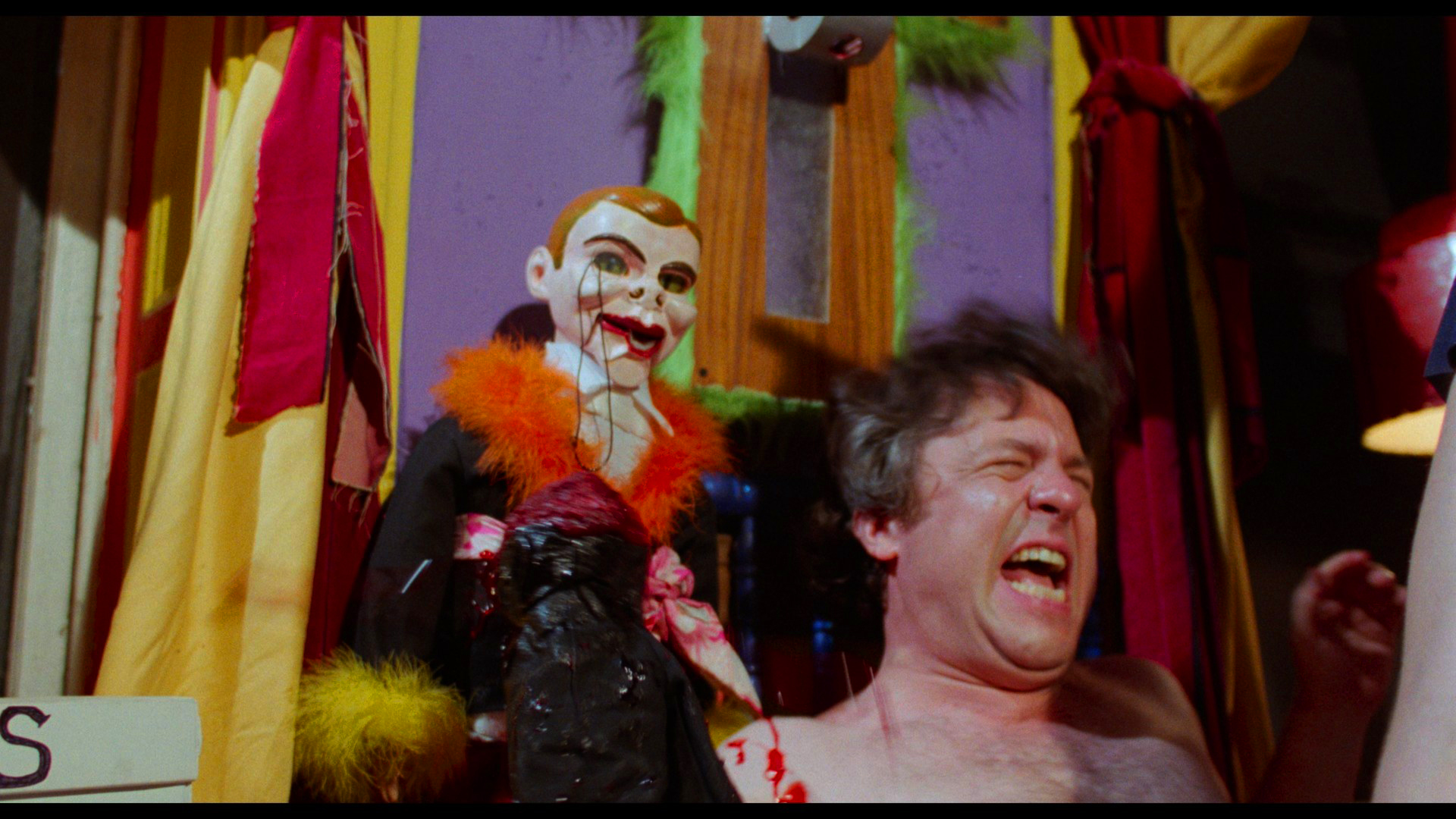 A double-disc 20th anniversary Blu-ray set released in 2019 features a matted presentation of the film , a different 3m23s Kaufman intro with Rochon and Haaga, a "20 Years Later" retrospective featurette" (14m13s), and Kaufman's solo commentary on the first disc. Disc two is devoted to the "Farts of Darkness" doc (in SD) plus the deleted scenes, Terror Firmerauditions, bloopers, Charlotte Kaufman piece, the comic-film comparison, a #ShakespearesShitstorm trailer, Gyno-Talk, and three music videos. Unfortunately the presentation was severely lacking with faded color, very weak blacks, and an iffy Dolby Digital 2.0 track that sounded heavily compressed.