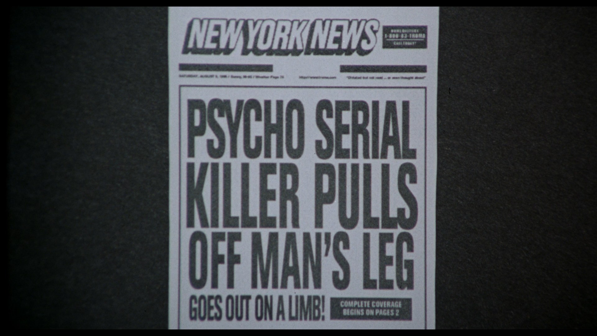 Of course those options were mostly rendered obsolete with a three-disc(!) UHD and Blu-ray edition from Vinegar Syndrome featuring a fresh new 4K scan from the negative on both the UHD and first Blu-ray, plus all three commentaries. Image quality is a tremendous improvement with the Dolby Vision grading on the UHD creating some wild visuals, and both detail and film grain look excellent. Some minor single scratches pop up in the first quarter or so, but it's nothing to worry about. The DTS-HD MA 2.0 English stereo track is also far more healthy than the earlier Blu-ray, with optional English SDH subtitles provided. The first Blu-ray also features new extras beginning with "Cinema Terror FirmerThrough Chaos" (48m40s), featuring Kaufman, writer Douglas Buck, editor Gabriel Friedman, Keenan, Haaga, Rochon, Sean Pierce, Greg "G-Spot" Siebel, Charlotte Kaufman and crew members Joe Lynch and Eric "Zork" Alan sharing more tales about getting Terror Firmerinto character, acting out on the city streets, and looking back at the killer's now touchy revelation and the motivation behind it. Then "Lloyd Gets Spooked" (16m46s) covers Kaufman's appearance at the film's raucous Minneapolis premiere with plenty of footage and new interviews with members of Carshool-Film-O-Rama. Finally "The Zork-ive" is a treasure trove of previously unreleased interviews Zork conducted during production with Kaufman (7m57s), LaTourelle (13m9s), actress Reverend Jen Miller (8m8s), Lemmy (4m20s), actor Roy David (8m25s), Haaga (2m50s), actor Yaniv Sharon (7m2s), and the one and only Joe Franklin (13m34s). The second Blu-ray houses the remainder of the video extras including the extended SD version (open matte as usual with all the surprising extra frontal nudity) with reinstated deleted scenes and editors' commentary, the "Farts of Darkness" doc, the "20 Years Later" featurette, alternate footage, auditions, bloopers, Charlotte Kaufman interview, deleted scenes with commentary, escalator scene comparison, Gyno-Talk, Kaufman's intro from the earlier Blu-ray, and the teaser and trailer. Note that the music videos are not carried over, so hang on to one of those earlier discs for those. The deluxe set also comes with a 40-page, perfect-bound book with new essays by Mathew Klickstein, Alex Gootter, and Heather Drain studying one of the wildest and most representative entries in Troma history.