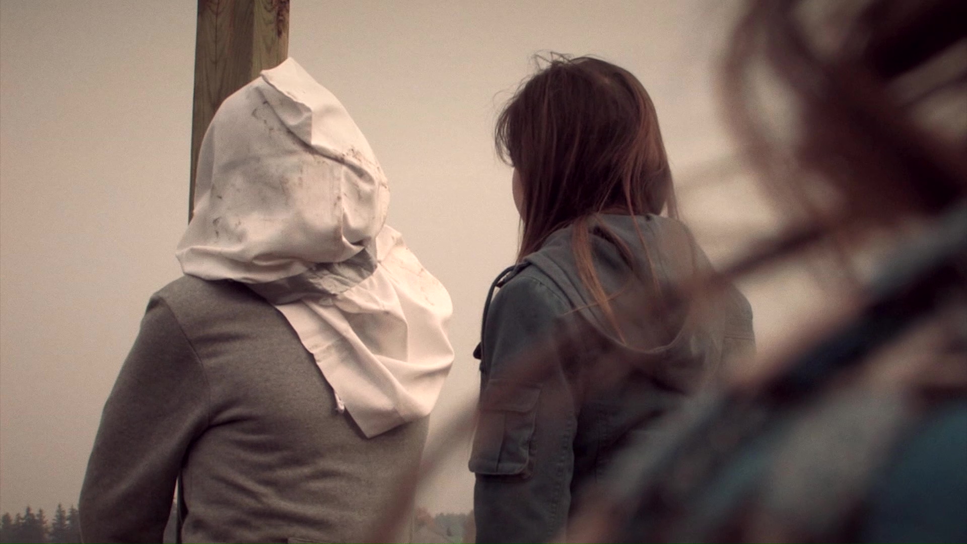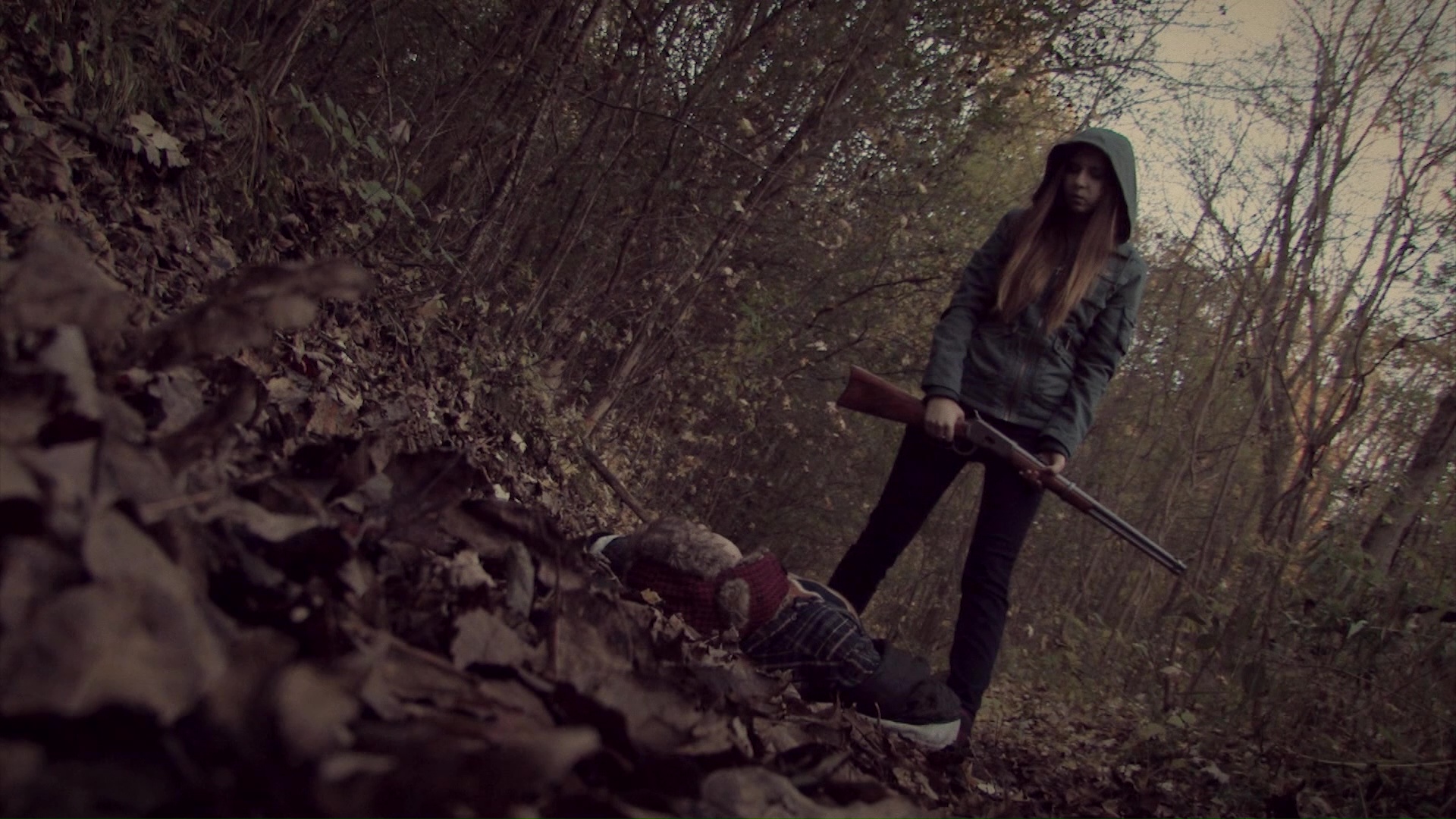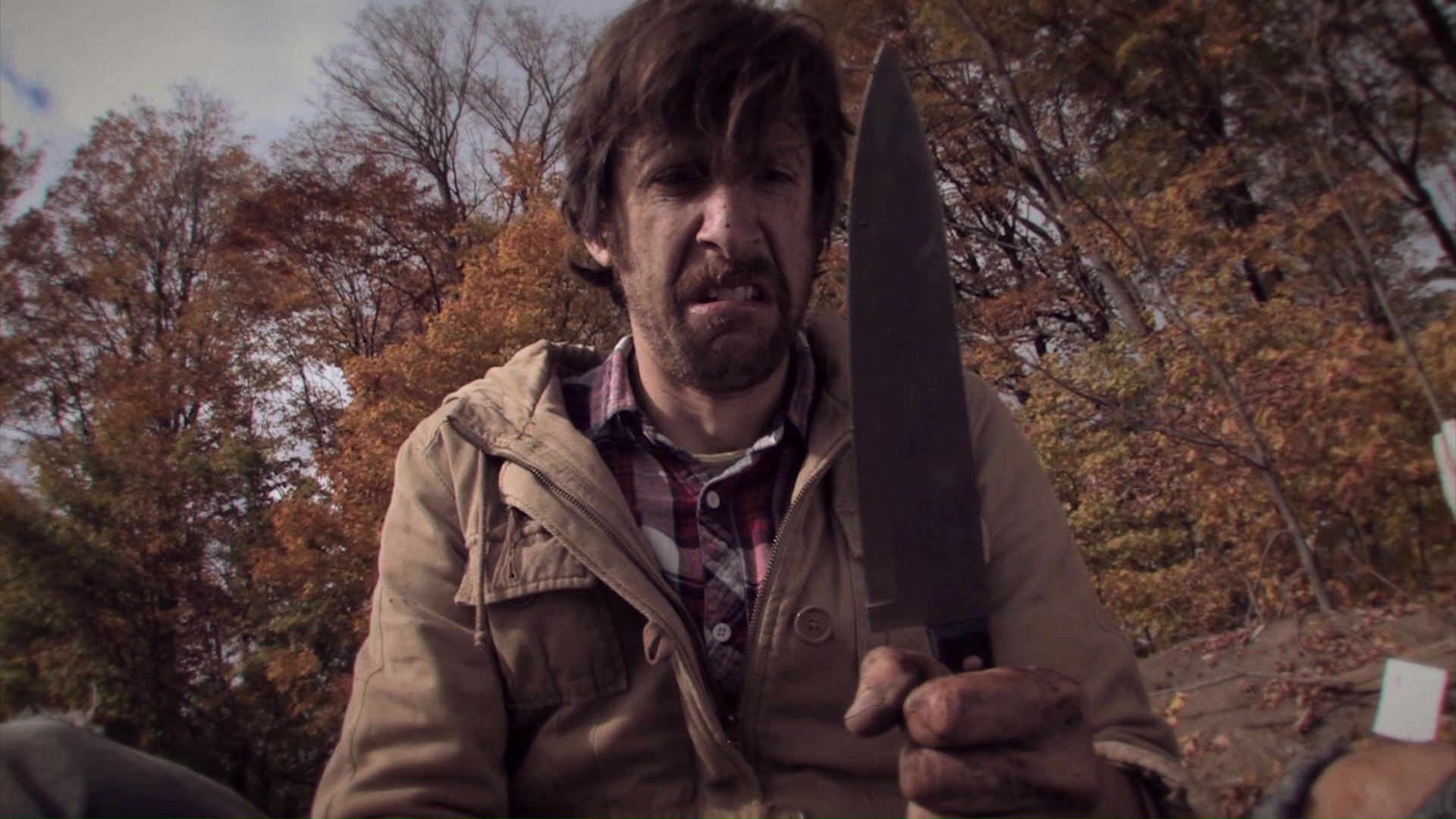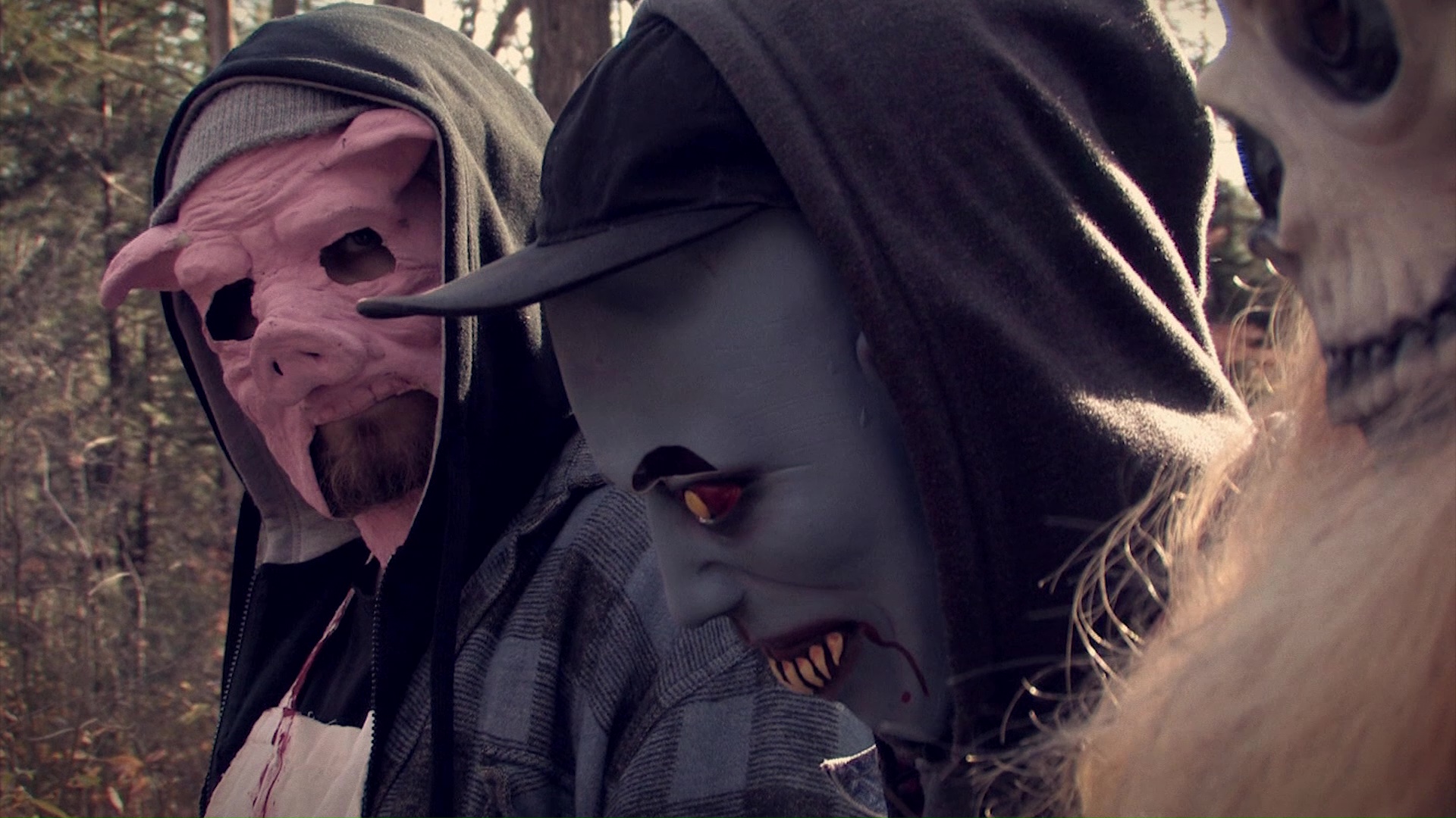 stories is tricky since the characters don't have names, but here's the gist. "Fondue" (originally a short made in 2013) feels like a Halloween spin on The Texas Chain Saw Massacre as two adolescent trick or treaters decide to pay a visit to a very special house for something much nastier than candy or an apple. In "Malleus Maleficarum," a passage from Leviticus segues into a town where two siblings and their aunt purchase an accused witch to take back home and punish, and when one of their fold strays from the brutal cleansing rituals, it turns into a frantic, deadly chase in the woods that probably won't end well for anyone. In "Stash," three homeless people loading up on candy to keep them fed for the winter decide to bury their bounty in big holes in the woods, but when one of them gets a little too greedy, it turns into the most macabre use of candy corn in movie history. Finally, "Delivery" focuses on two cops who notice the alarming number of missing people in the area and decide to go off the beaten path, only to make a gruesome discovery with a little twist. In between each story the framing device advances as the paper boy runs afoul of the person writing the stories, who has his own psychotic motivation that plays into the truly nightmarish climax.