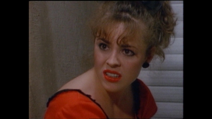 Quite fun in a pulpy, amateur theater sort of way, this film actually works up a reasonably spooky atmosphere with its claustrophobic, metal and brick locations cobbled together from a variety of buildings and sets in Toronto. A few bits are even genuinely clever, such as the payoff to the best puzzle involving giant letters and symbols on the floor holding the answer to a riddle. There's virtually no character development to speak of apart from allusions to the pair's past relationship (and a hilariously random moment when they take time out for some hot lovin' in the least romantic location imaginable), but the film moves quickly over its 76-minute running time with Rockwood offering at least one or two thespian surprises in every scene. Beck is actually pretty good -- it's easy to see why she had a decent local film career after this -- and has that odd Joey Heatherton habit of keeping her lips pulled up around her teeth in close-ups.