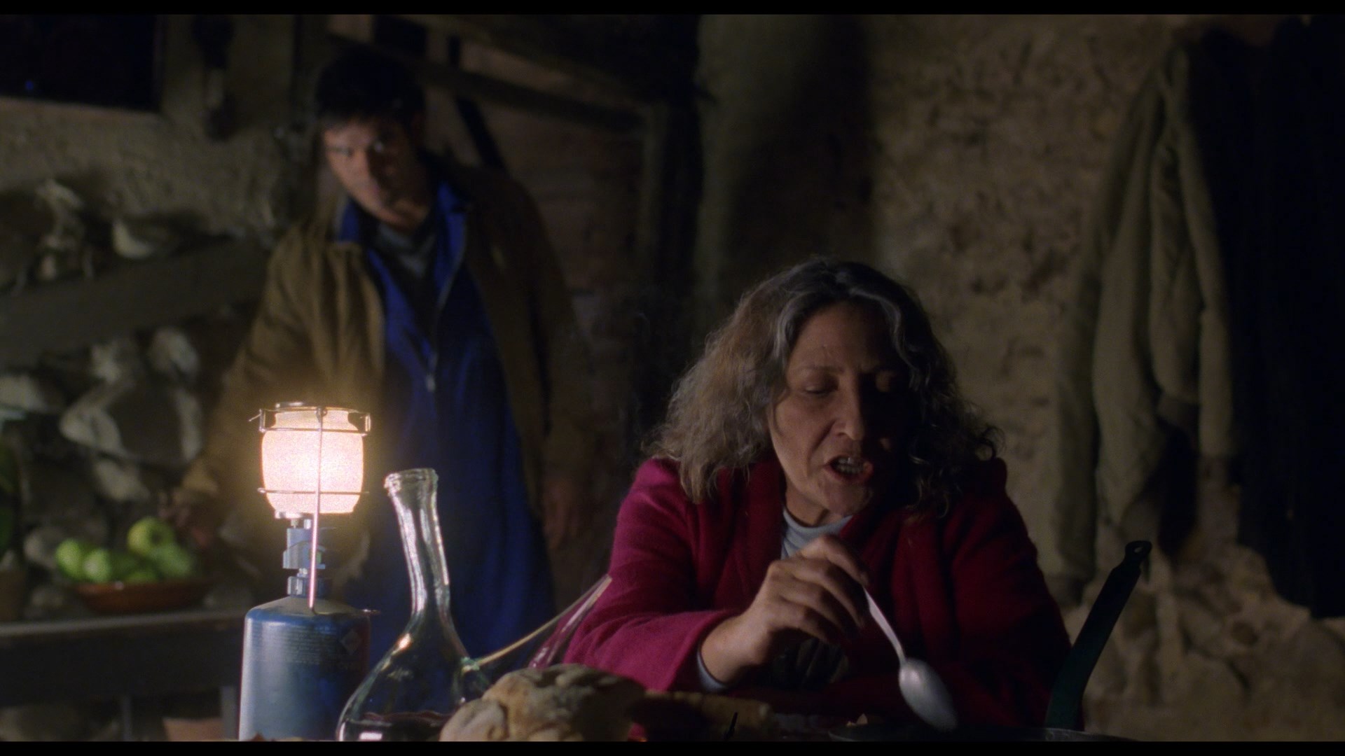 Spanish audio is presented in DTS-HD MA 5.1 or LPCM 2.0 stereo tracks with optional English subtitles; there isn't a dramatic difference between the two but to these ears the 2.0 has a bit more heft to it. The extras kick off with a 2018 video interview with Villaronga (10m10s) about the real-life origins of the story involving apparitions in walls and his approach to making horror and suspense films. (He actually only talks for a few minutes, with a lengthy film clip stuck in the middle.) A vintage making-of featurette (18m39s) is more substantial, with the cast and stars chatting at length about their approach to the project (Barranco is a big fan of In a Glass Cage!) along with a lot of behind-the-scenes footage. Also on hand is ace cinematographer Javier Aguirresarobe (The Others, Talk to Her), who covers his approach to the unrealistic color and lighting scheme used in the film. In a nice touch, you also get the entire score by Javier Navarette (Pan's Labyrinth) presented as a 47m12s video. Finally the disc rounds out with the trailers for In a Glass Cage and Moon Child; the first 250 orders directly from the label come with a soundtrack CD, which is also available on a less limited basis as part of a three-disc set.