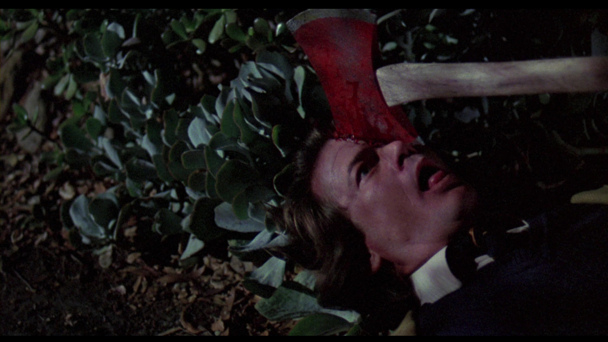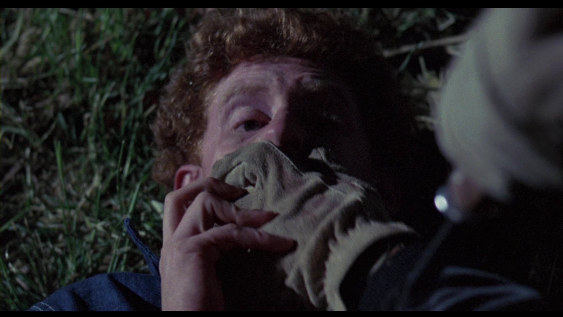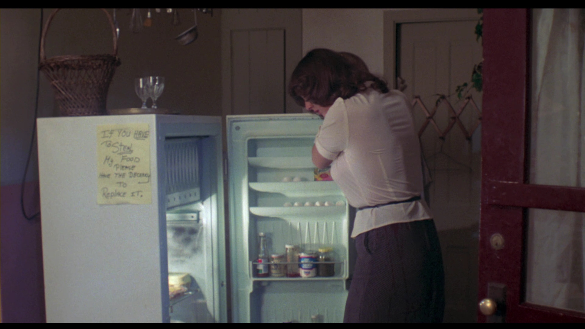 The film's eventual fate became clear when the film surprisingly popped up in a new HD transfer as an on-demand title from select cable companies in 2013, complete with an MGM logo at the beginning. The result was far more watchable than the very dark, very murky tape version, which was often incoherent at times, and at least the film finally looked more or less like a real production. Of course, that also means you could more easily spot the cost-cutting shortcuts including some hilariously unconvincing "blood" effects, but that's just part of the fun. That same excellent transfer is the source for Kino Lorber's 1080p Blu-ray (with a DVD also available), which looks exceptionally strong throughout. There's really nothing to complain about at all here; colors look great, the night scenes are finally correctly balanced, and the DTS-HD mono track is a major improvement with the dialogue and electronic score faring very well throughout. Extras include a spoiler-y theatrical trailer and a trio of new video interviews, with Runyon getting 12 minutes to discuss her debut here (which she still regards warmly) and some of her other notable roles, including a brief but memorable turn in Ghostbusters. Less keen on the film but equally entertaining is actress Kiva Lawrence, whose 9-minute interview paints a picture of a very fast (ten days!), slapdash production, including some pretty good clues about why Hess never directed a feature film again. Finally Rebar gets his turn with a 13-minute piece covering his acting career before this film and how he got the gig and why the film was passed over by more famous distributors. You'd never expect an off-the-wall title like this to get the special edition HD treatment, but that's part of the glory of being a horror fan in the digital era.