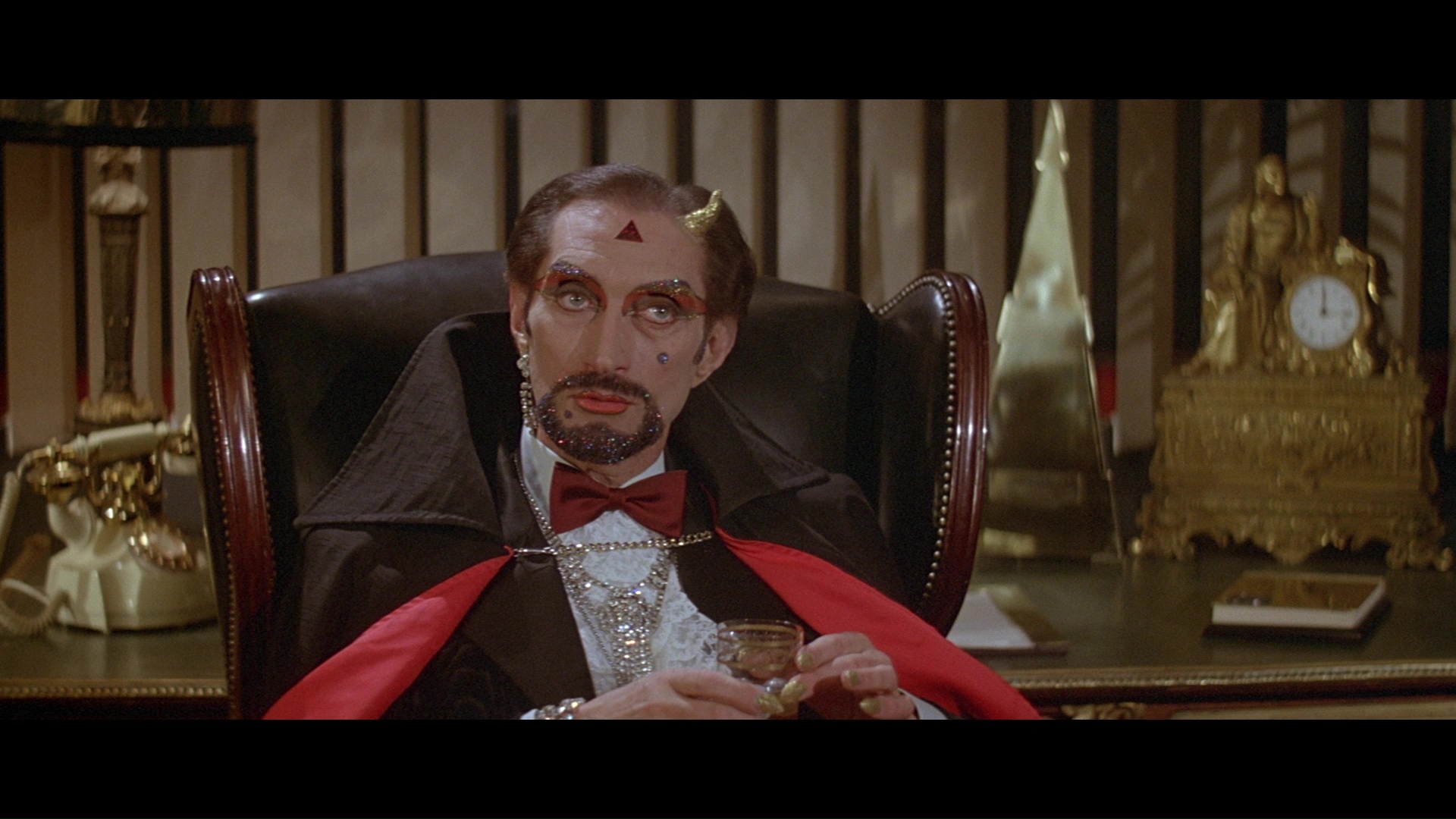 After its first VHS release in America by Paragon (who had the early Cannon titles for a while) and some international tapes around the same time, The Apple stayed out of commission on home video until sudden midnight movie following earned a DVD release from MGM in 2004. Thankfully the DVD (which includes the theatrical trailer as its sole bonus) reinstated the film's Dolby Stereo track, which was left off of the general release theatrical prints in favor of a flat mono mix instead. The DVD looked quite good for the time, but the passage of time meant that a Blu-ray just had to come along at some point. Thankfully that came to pass in 2017 with separate Blu-ray and DVD editions from Kino Lorber produced by Scorpion Releasing, sporting a fresh HD scan