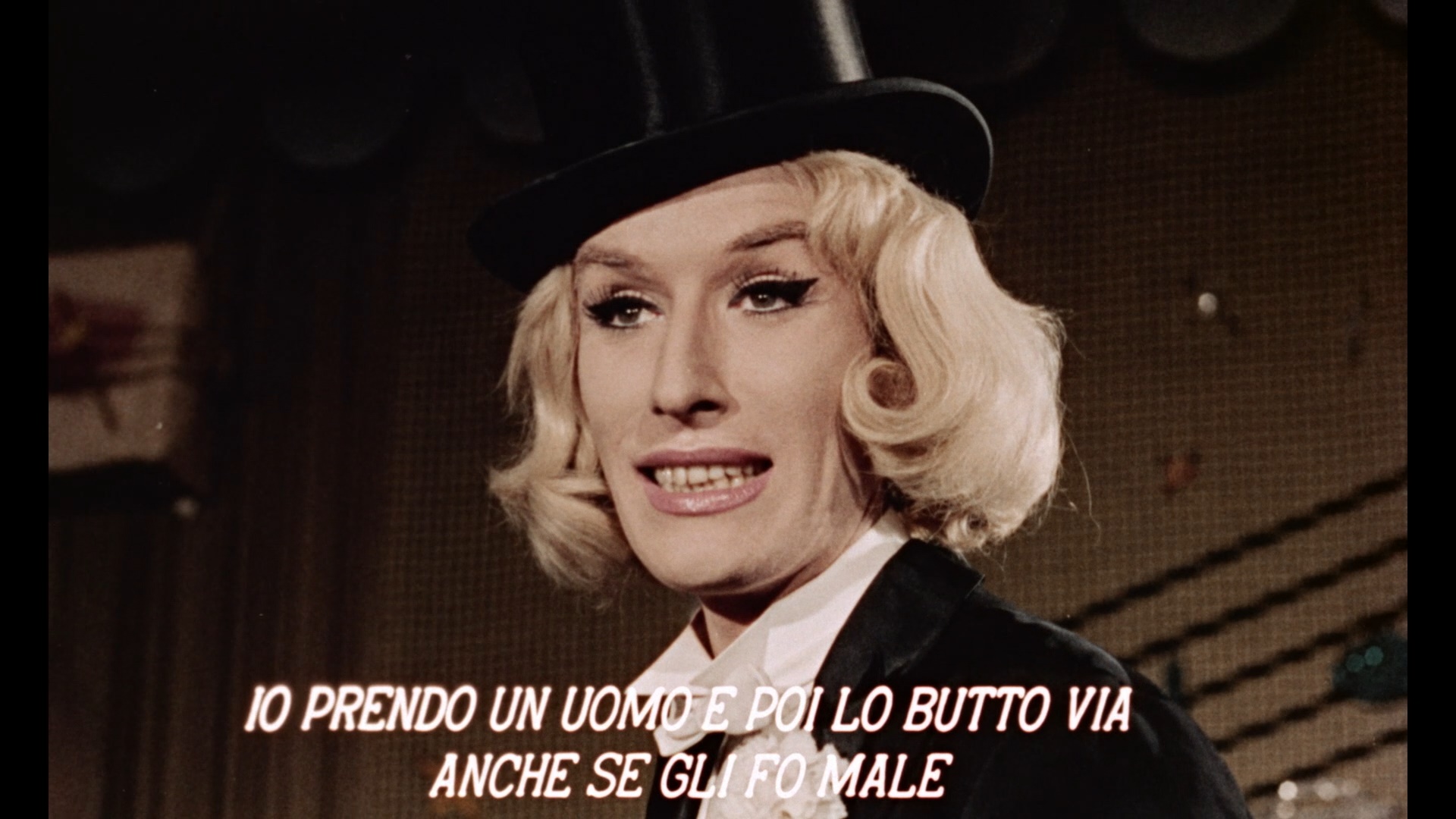 bookended with sequences in Italy showing people grabbing some afternoon delight in public in their cars, crew workers on a peplum set, bosom-exercising vocal lessons,