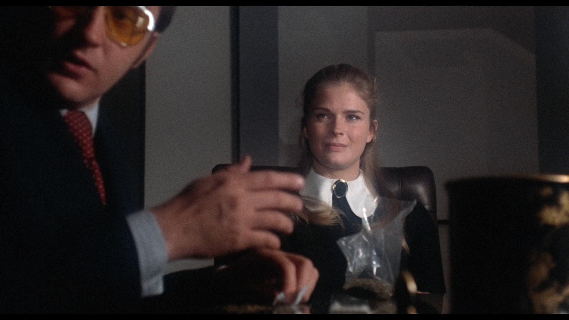 the original gritty, grainy look of the cinematography fully intact. The 1.85:1 framing is also dead on and satisfying, much better than the weird open matte framing on its TV airings that threw all the compositions out of whack. The DTS-HD MA 2.0 English mono track is also in fine shape and features optional English SDH subtitles. A new audio commentary by Ben Reiser and Scott Lucas touches on a lot of topics including identifying some of the Chicago locations, pointing out some sly in-jokes in the camera placement and geography of the office scenes, and noting how the prejudices of certain critics at the time probably influenced how the film was received upon its release. "Get in the Tent" (14m39s) is a new video interview with Hyams, who talks about working as a CBS anchorman and having an art school background before moving to the film world and cutting his teeth via documentaries. It's a very funny and enlightening piece as he sketches out the path to writing this script for this film and how pleased he was with the casting choices, including a lifelong friendship with Bergen and of course using Boyle later in Outland.