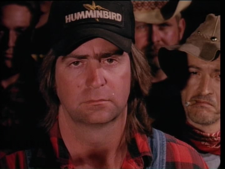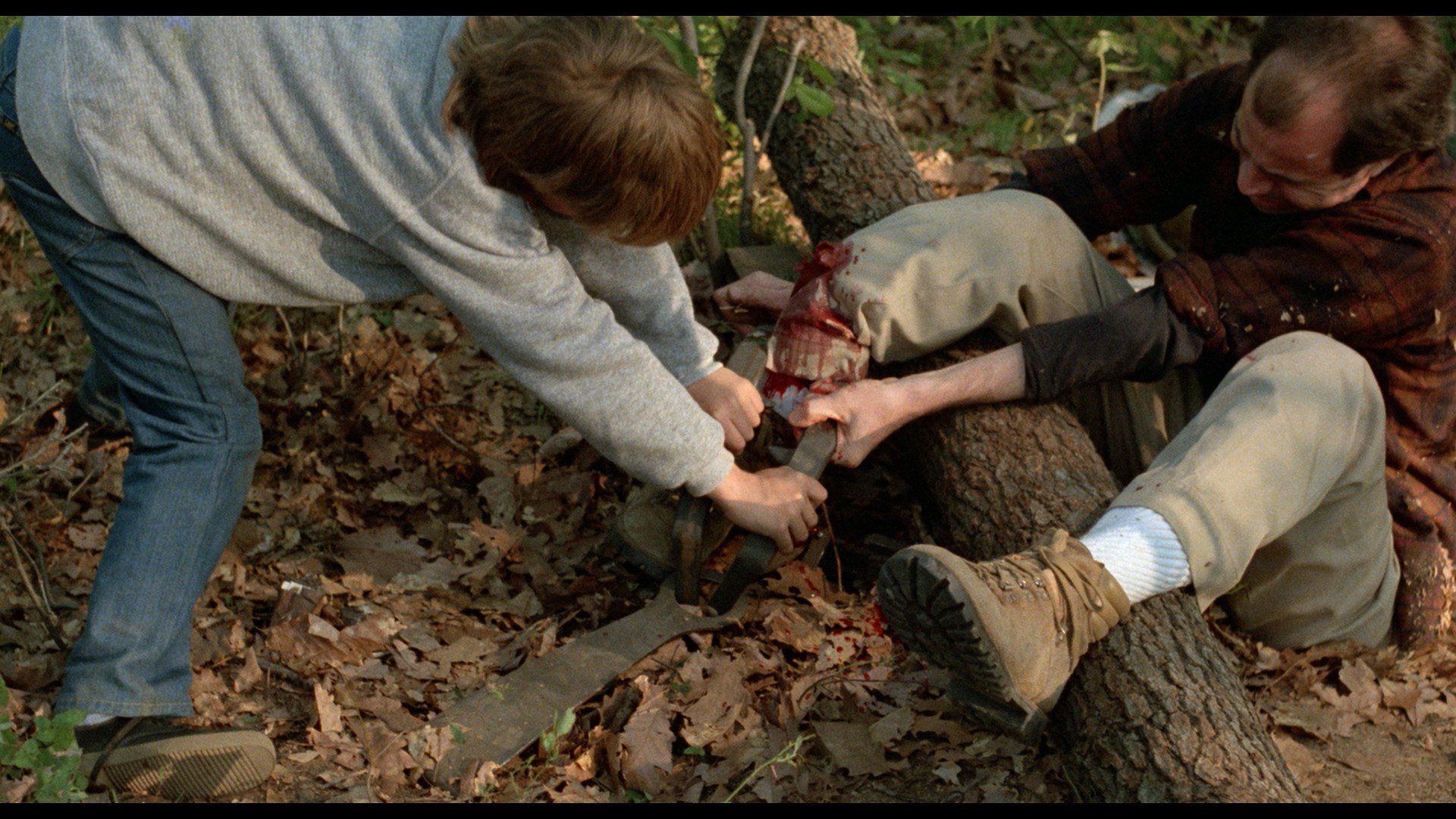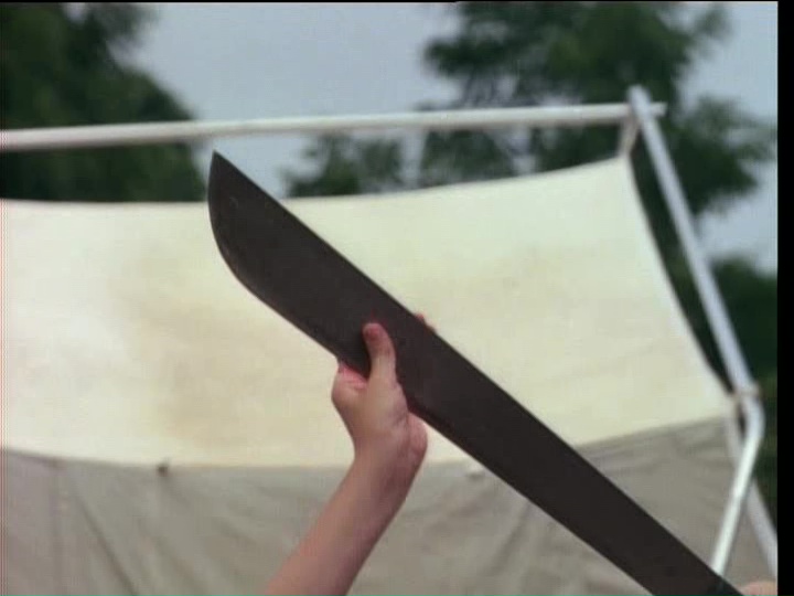 testy writer John DeWolfe (Robertson) meets up with his brother-in-law, Ross (Hamilton), a sheriff whose daughter has gone missing. Since we see a particularly salty Bible pusher get whacked in half with a scythe as soon as John pulls in, it's clear that the cannibal kid plague is spreading rapidly with the incredibly inept parents either unable or unwilling to do much about it. As the body count piles up, it's clear this will only end in tears -- and a lot of blood.