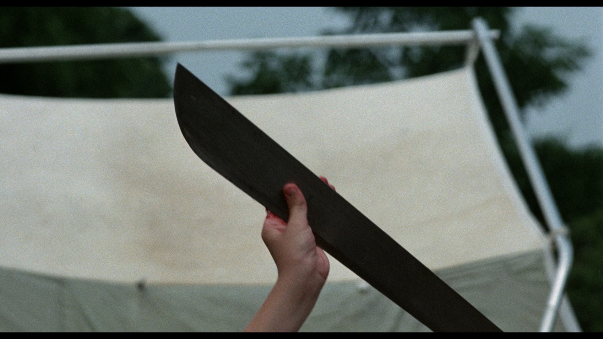 Not surprisingly, the Vinegar Syndrome region-free Blu-ray vaults way past that ancient DVD with a fresh 2K scan from the 35mm original camera negative that looks immeasurably better in every possible way. The awkward open matte framing has been corrected here to a more focused 1.85:1, the color scheme improves considerably, detail increases throughout... you name it, this one stomps all over the old disc. The DTS-HD MA 2.0 English mono track is also in much better shape (with optional English SDH subtitles provided), and that crazed score has never sounded better. The old Cribben video is ported over here, but you also get him in a new commentary track that has a ton