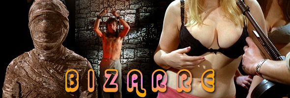 Conspicuously absent on the home video market, Bizarre made the horror and softcore sex theater rounds for nearly a decade before vanishing into the exploitation ether, only to resurface to prove that, yes, such a film does indeed exist. Obviously the attention-grabbing gimmick of the mummy narrator will grab any viewer's attention first, but the whole film has an off-kilter atmosphere that makes it weirdly compelling; not only do you never have any idea where each story will go, but often the next shot in every sequence comes as a surprise. Coherent it ain't, but you won't be bored. Aside from one snippet of the burglar sequence seemingly culled from a different print (featuring some startling split-crotch nudity and borderline hardcore manual penetration), the sexual content is pretty much in keeping with the period: lots of bouncing breasts, with a few