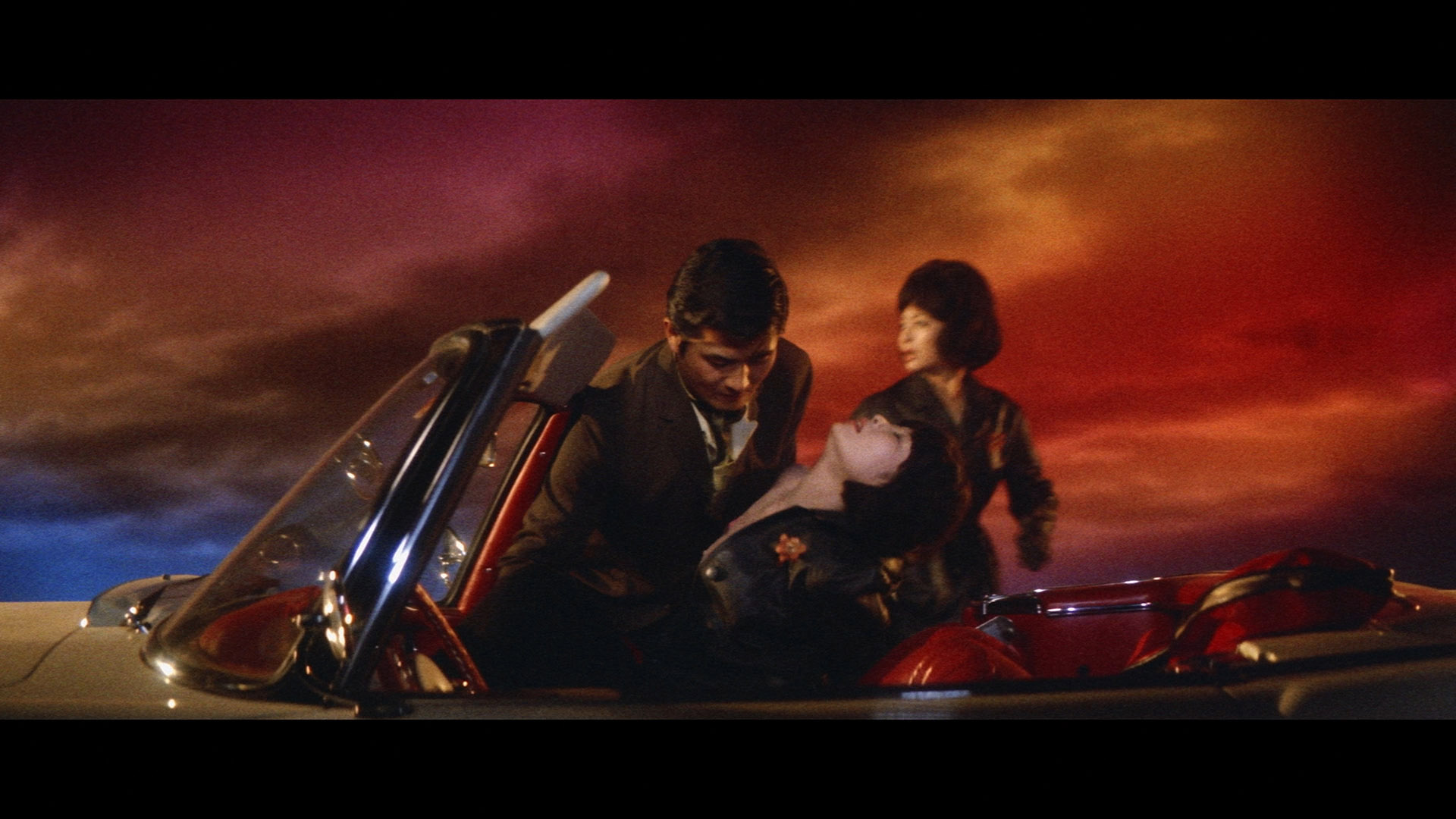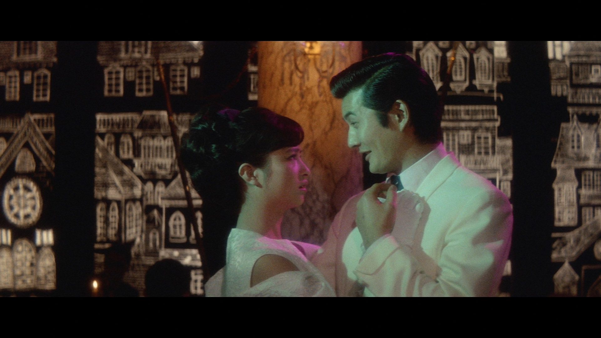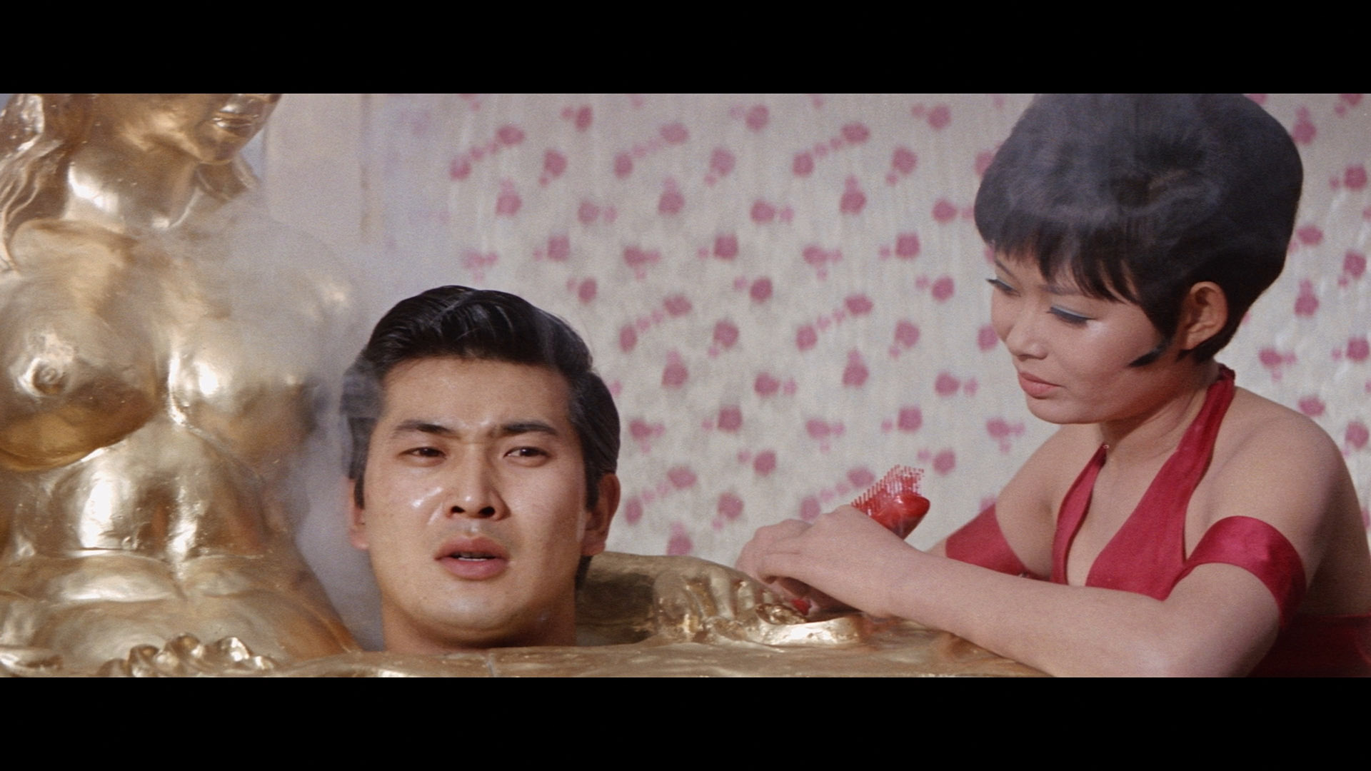 A French Blu-ray popped up in 2018 in Japanese with French subtitles, but a much better option is the 2024 Blu-ray from Radiance issued simultaneously in the U.S. and U.K. As expected this is a welcome improvement over the DVD across the board with better clarity, more accurate colors, and particularly more legible dark scenes that don't appear murky anymore. Of course, the fact that the English subtitles are finally optional is a big plus, too! The LPCM 1.0 mono Japanese audio is also in excellent condition. A thorough new audio commentary by Jasper Sharp finds him very much in his wheelhouse as he appraises the film's pop culture charms, its status within the Nikkatsu canon at the time, Hasebe's background including his stints as an assistant to Suzuki, connections to other crime fiction characters and tropes, some tantalizing obscurities from the era that haven't resurfaced, and lots of info about Japanese filmmaking techniques and technical equipment at the time. Also included are the Hasebe interview from the original DVD and the crazy Japanese trailer, while Chris D. provides new, considerably updated thoughts in his liner notes essay included in the limited edition packaging.