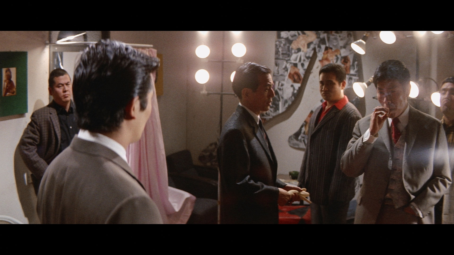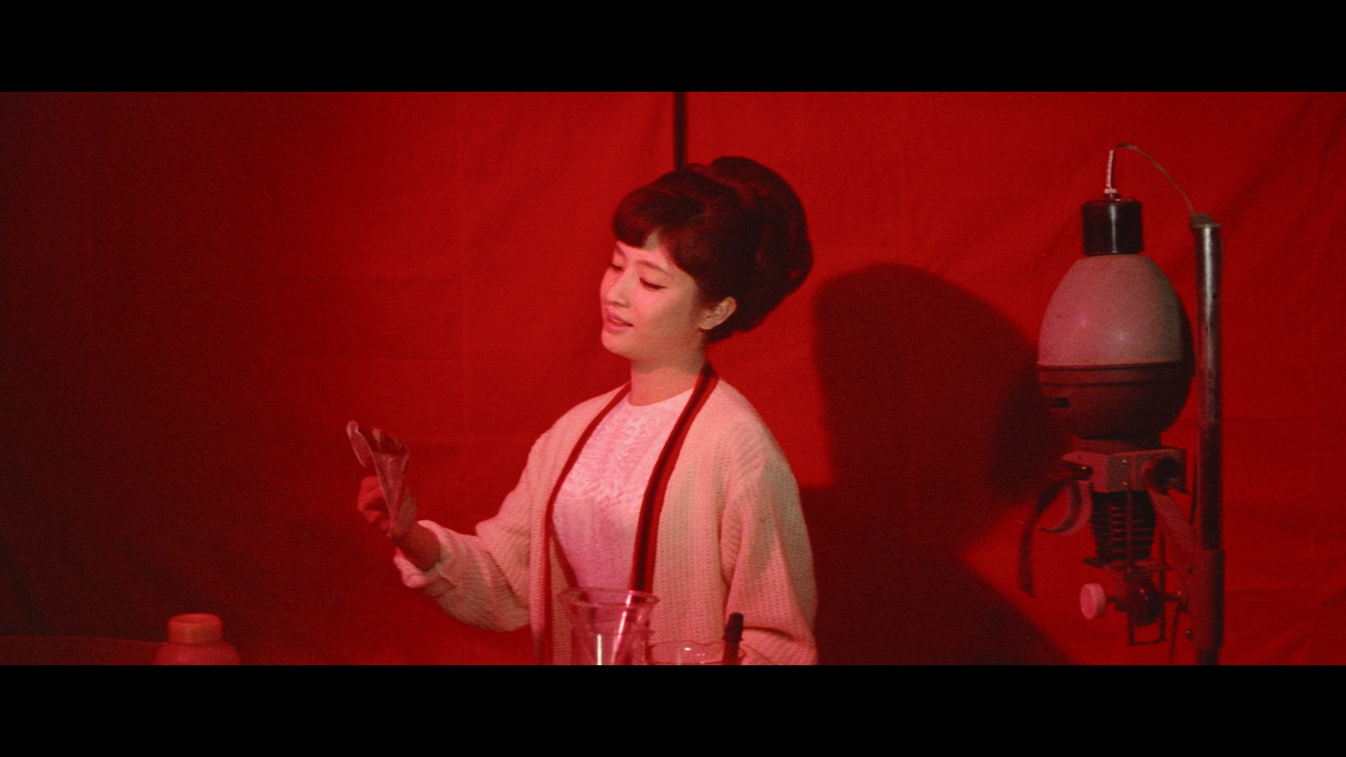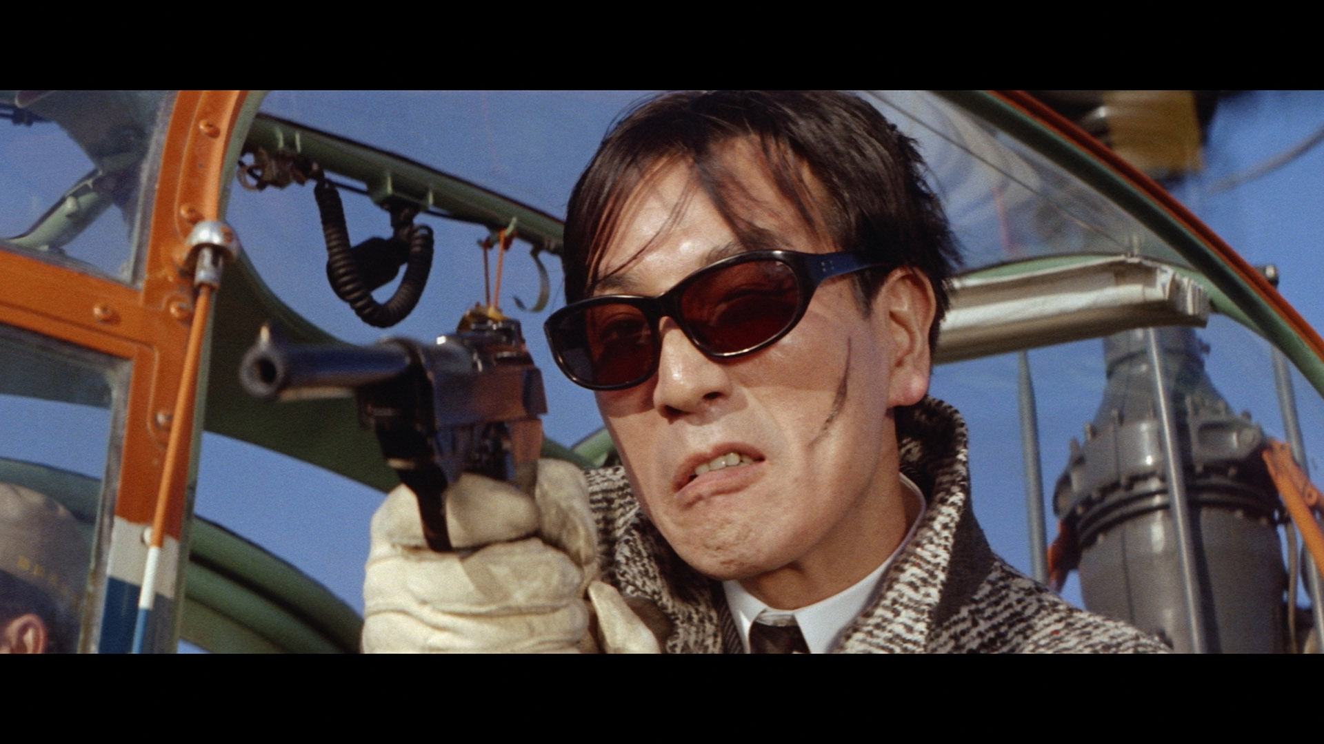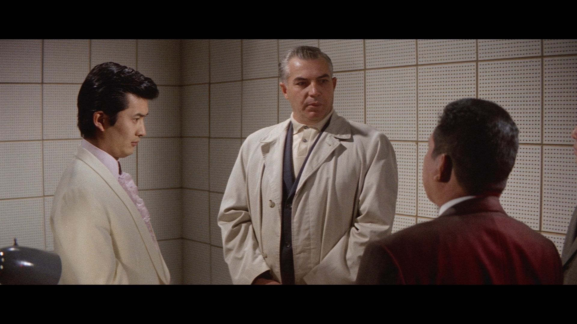 A French Blu-ray popped up in 2018 in Japanese with French subtitles, but a much better option is the 2024 Blu-ray from Radiance issued simultaneously in the U.S. and U.K. As expected this is a welcome improvement over the DVD across the board with better clarity, more accurate colors, and particularly more legible dark scenes that don't appear murky anymore. Of course, the fact that the English subtitles are finally optional is a big plus, too! The LPCM 1.0 mono Japanese audio is also in excellent condition. A thorough new audio commentary by Jasper Sharp finds him very much in his wheelhouse as he appraises the film's pop culture charms, its status within the Nikkatsu canon at the time, Hasebe's background including his stints as an assistant to Suzuki, connections to other crime fiction characters and tropes, some tantalizing obscurities from the era that haven't resurfaced, and lots of info about Japanese filmmaking techniques and technical equipment at the time. Also included are the Hasebe interview from the original DVD and the crazy Japanese trailer, while Chris D. provides new, considerably updated thoughts in his liner notes essay included in the limited edition packaging.