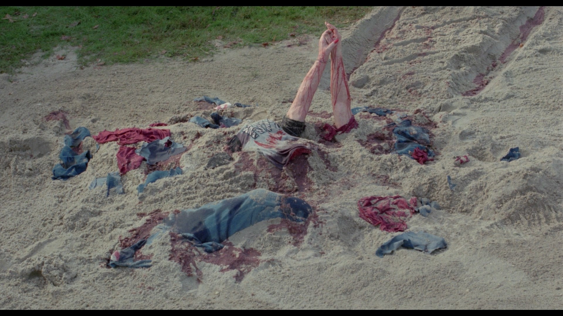 Barely shown in theaters, Blades made the rounds on VHS from Media and then Troma for years before hitting DVD in a triple feature with Blood Hook and Zombie Island Massacre. This was the last of the three to get a Blu-ray upgrade from Vinegar Syndrome, and its 2021 edition is as good you'd expect with a stellar 2K scan from the 35mm original camera negative. The older scan we've had around for decades looks positively sickly by comparison, and it's an upgrade in every possible respect thanks to the restoration of the intended matted framing, far superior colors, and a big jump in detail. Director Thomas R. Rondinella and writer William R. Pace participate in both a new audio commentary and a video featurette, "Fore! Warning" (21m32s), the latter also bringing along producer John P. Finegan (whose own golf background was a big part of the conception). Between the two you get a little bit of repeat but they're full of stories about the production including anecdotes about a prison inmate vital to getting the production launched, the guy named "Boom Boom" who built the trick lawnmower, and the continuity issues with shooting during short days that time of year. They also note some of the material that had to be chopped from the script when they ran short on time, including an intended riff on "You're gonna need a bigger boat." Finally the disc wraps up with a fun photo gallery (2m11s) of behind-the-scenes shots from Pace's personal collection.