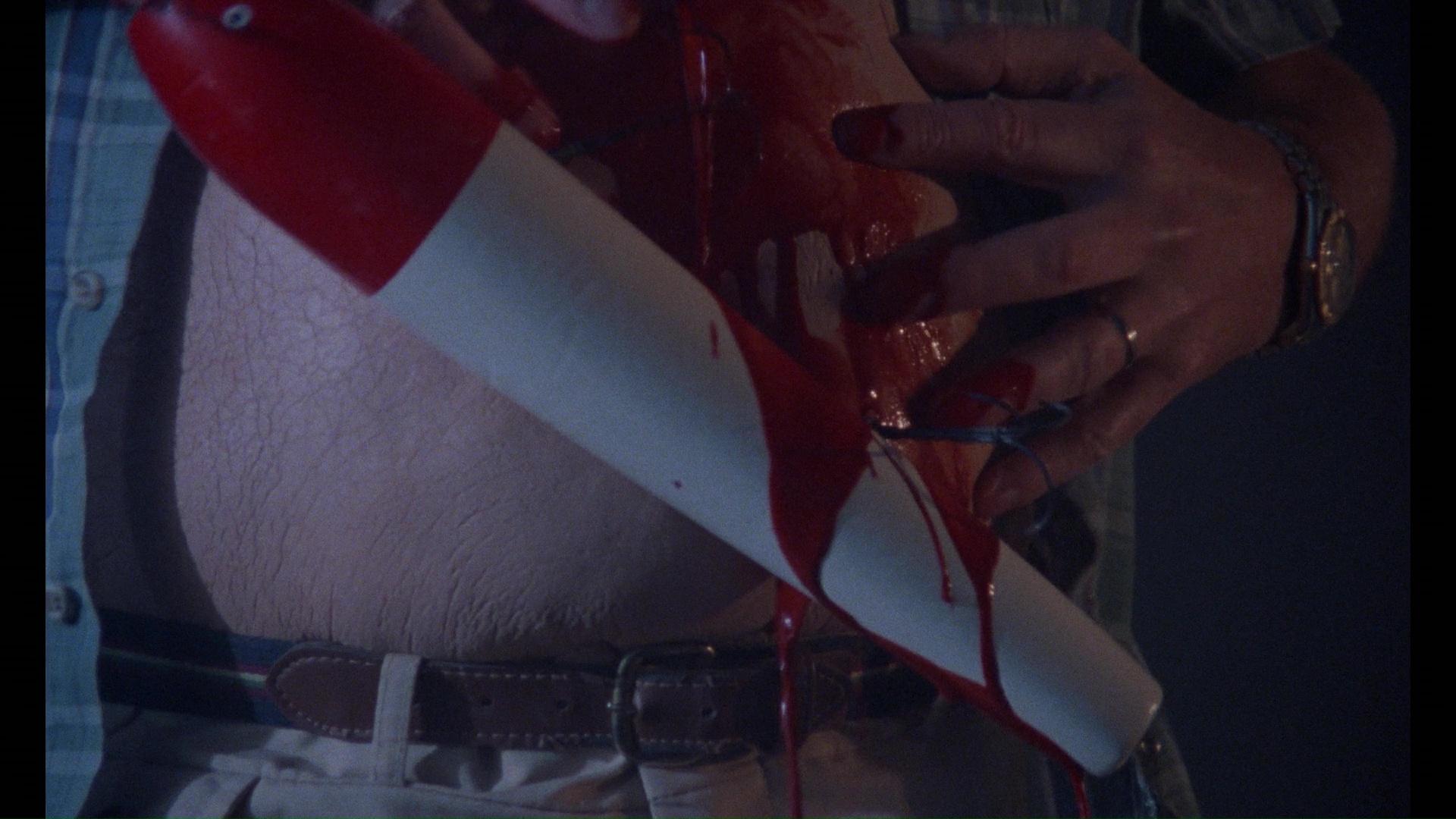 Boasting a new 2K scan of the 16mm camera negative, Blood Hook looks vastly superior here compared to the Troma release. That's not much of a shock, obviously, but it truly is surreal to see it looking so fresh and vibrant;
