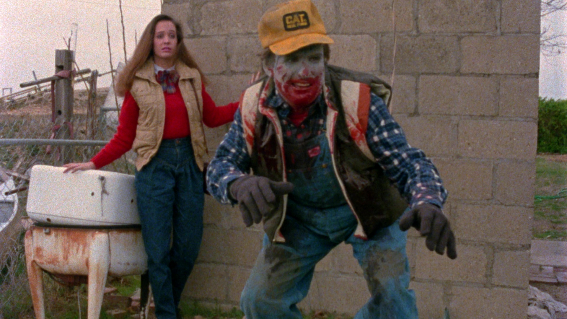 An alien contamination becomes adrift on the wind through a series of small towns, wreaking havoc and turning the townspeople into flesh-munching ghouls (though some still retain their manners). Photojournalist Jeff (The Nail Gun Massacre's Meyers) picks up a pretty hitchhiker, Julie (Ellis), on the way to see the relatives who are pressuring him to return home to run the farm, but upon arriving they find themselves fleeing across the backgrounds to get away from the encroaching zombie menace. Meanwhile the dubious scientists at a nearby research facility perform tests on the undead to figure out exactly what the heck's going on, but their boozing and carelessness don't inspire much confidence either.