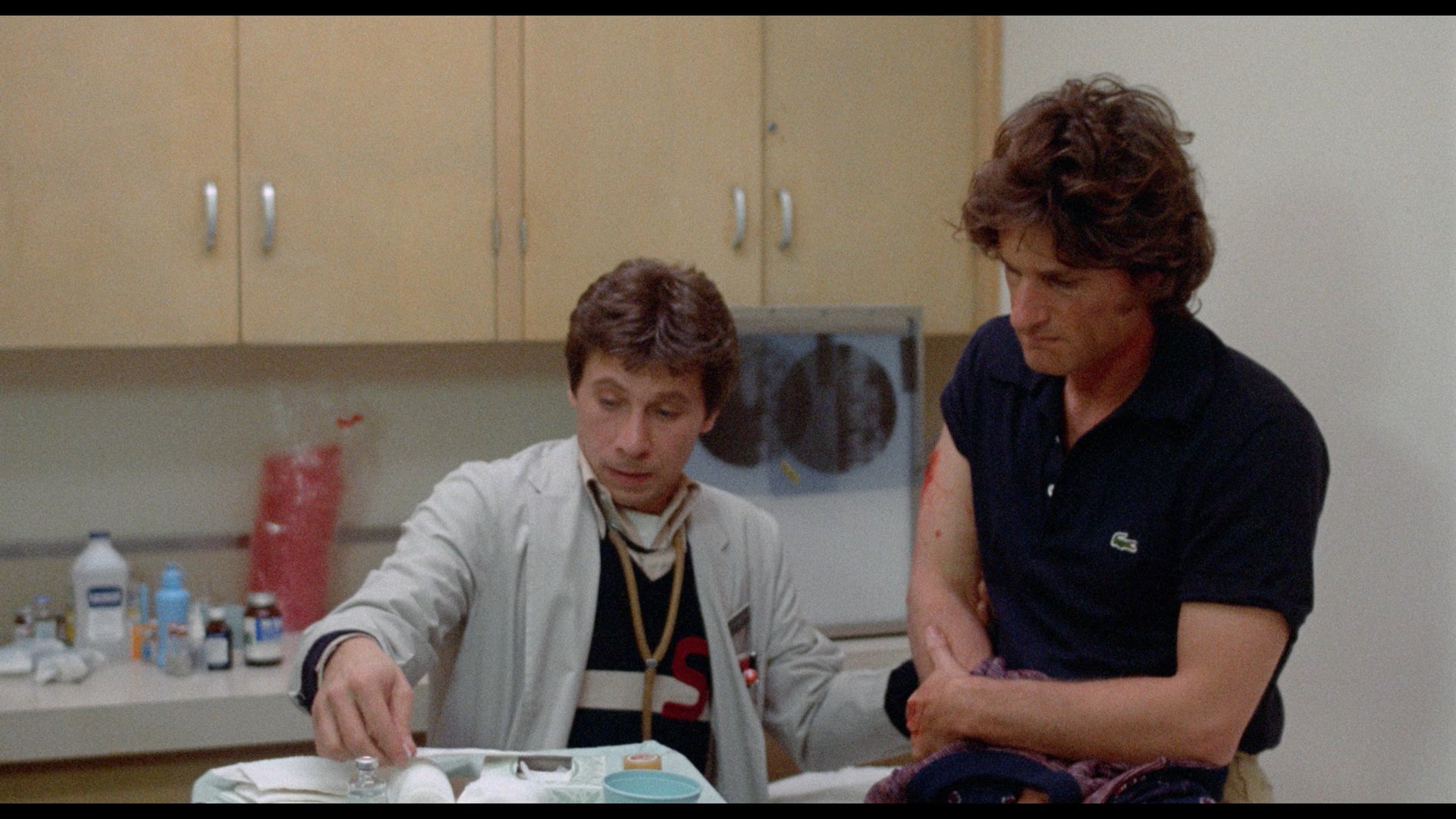 Both also port over all the extras from the Filmcentrix release on the Blu-ray options (commentary, featurettes, archival Q&As, etc.) and let the film itself fill out the UHD with only the commentary, while adding the alternate trailer and The Ringer with optional Lieberman commentary to the Blu-ray. The Camera Obscura also has a 35-image gallery of posters and stills accompanied by soundtrack music, plus a booklet with an essay by Dr. Marcus Stiglegger; audio options include PCM 2.0 mono for the differently pitched German theatrical and home video mixes and the English mono mix, plus a DTS-HD MA 5.1 English track with optional German or English subtitles (plus optional German subs on the extras). On the other hand, the French release has optional French subtitles and, rather t3han a DVD, tosses in a bonus Blu-ray featuring a no-frills presentation of Lieberman's 1988 VHS cult film Remote Control with Kevin Dillon and Jennifer Tilly (under the title Meurtes en VHS), though you can also purchase it separately on Blu-ray or DVD from Lieberman himself.Of course, it was just a matter of time before Synapse upgraded the film. In 2024 they issued a three-disc limited edition (UHD, Blu-ray and soundtrack CD), followed in 2026 by separate retail UHD and Blu-ray options. As you would expect it's the best-authored option of the bunch, featuring exceptional detail and a nice color gamut for the HDR10-compatible Dolby Vision grade on the UHD. The framing is identical as the prior Blu-ray and UHD options with similar but not identical color, with more convincing ones on display on a few scenes (like the fourth frame grab comparison below). The DTS-HD MA 2.0 mono and 5.1 surround English mixes both sound excellent, with optional English SDH subtitles provided. This time you get both of the Lieberman commentaries (with Berger and Drenner) together in one place, plus the 2003 interview with Lieberman, the Channel Z interview with Lieberman and Garris, and the "Lieberman on Lieberman" piece, plus a funny Fantasia Film Festival screening Q&A (36m29s) with Michael Gingold, two trailers, The Ringer, the bonus LSD short scare films LSD-25 (26m41s) from 1967 and LSD: Insight or Insanity? (18m3s) from 1968 with lots of inappropriate stock music and groovy narration, and a 5m37s image gallery. The film itself can also be played with a new 1m29s Lieberman intro about the film's real-life inspiration while he goofs with a Rodin-esque sculpture.