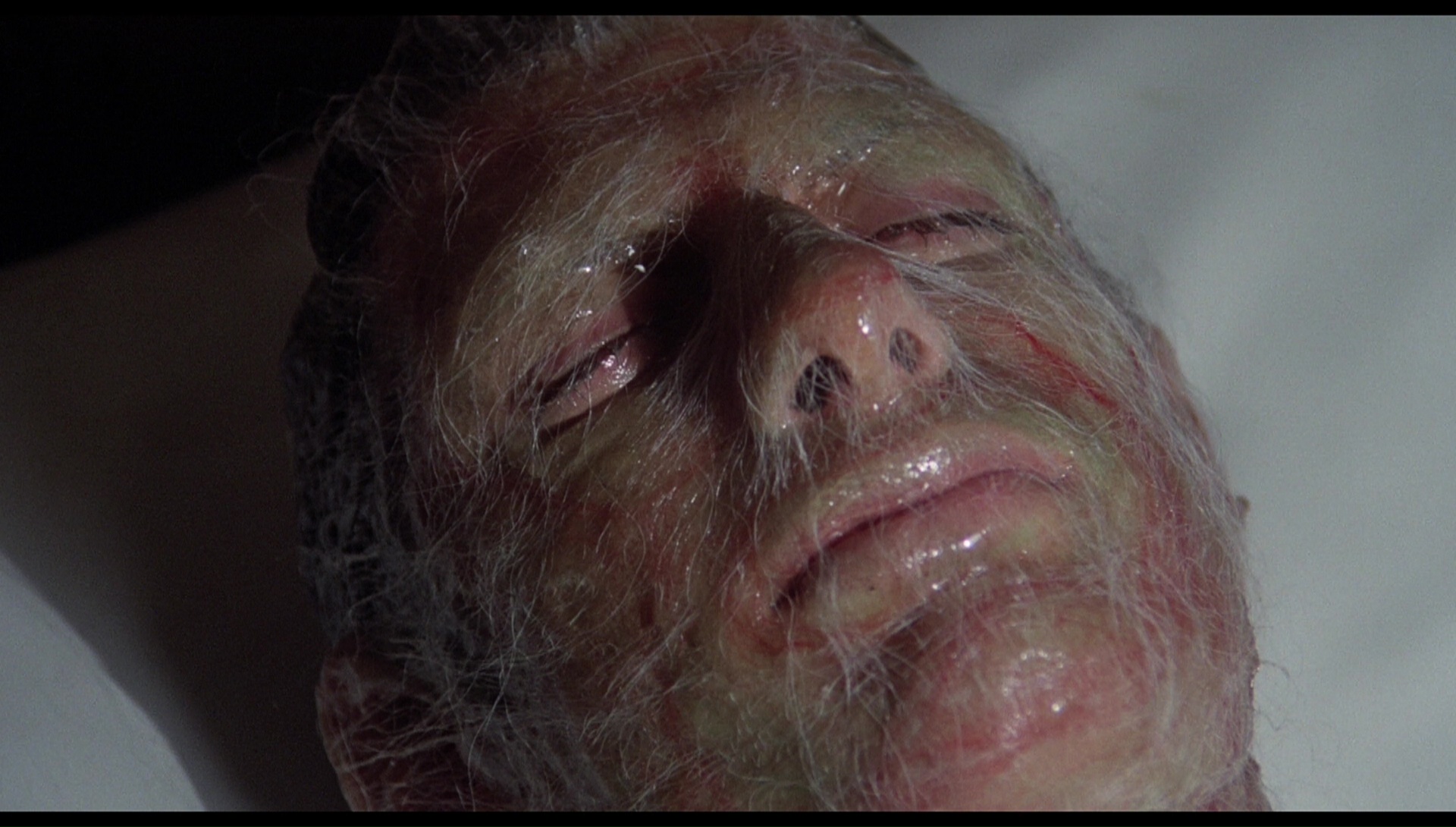 when they notice strange new flowers popping up around the city. On top of that Elizabeth is becoming increasingly unsettled by the behavior of her boyfriend, Geoffrey (The Brood's Hindle), who looks the same but seems like a different person entirely. The opening credits have already clued us in that alien life forms carried by solar winds have infiltrated Earth and started turning people into emotionless pod people, though we don't get to see the process in its full horrifying details until much later. Also involved in unraveling the growing conspiracy are friendly spa owners Jack and Nancy Bellicec (Goldblum and Cartwright), all of whom are given advice by local therapist and bestselling self-help writer Dr. David Kibner (Nimoy). However, none of them can be prepared for the full terrifying extent of what they're about to uncover.