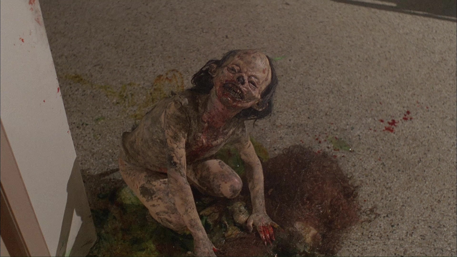 weather of the North Carolina shoot, with Diller obviously stealing the show here with her great wit and obvious fondness for creature features (with which she has a richer history than some might recall). All of those extras are ported over for the 2018 Blu-ray releases in the U.S. and U.K. from Code Red and 88 Films respectively, and the film itself looks pretty spectacular with far more richness than anyone might expect from prior versions. Culled from the original negative ("financed by Code Red’s Credit Card," per the U.S. packaging), it also features some additional color correction on the U.S. release with slightly better modulated contrast; the LPCM 2.0 stereo soundtrack sounds great either way (and the U.K. disc offers optional English SDH subtitles). The Code Red also adds an exclusive extra: "The Little Ghoul Girl Grows Up" (13m27s) features actress Sallie Middleton and her family chatting about making a zombie film at the age of nine and standing in for other ghouls during the production, with all the effects complexity involved that you'd expect. She's interviewed by associate producer Bill Smoot (with a bit of random input from sound mixer Sid Williams added to pad things out). The original, spoiler-crammed trailer is also included.