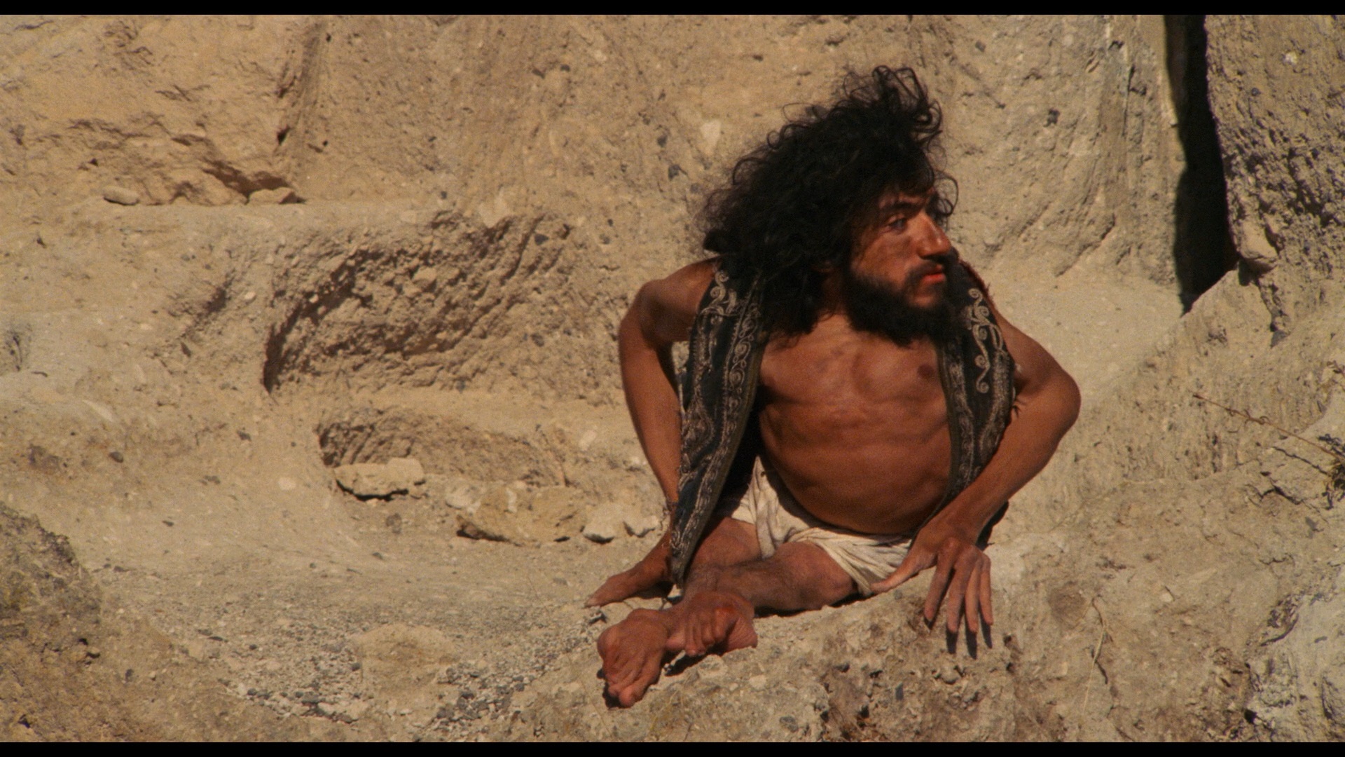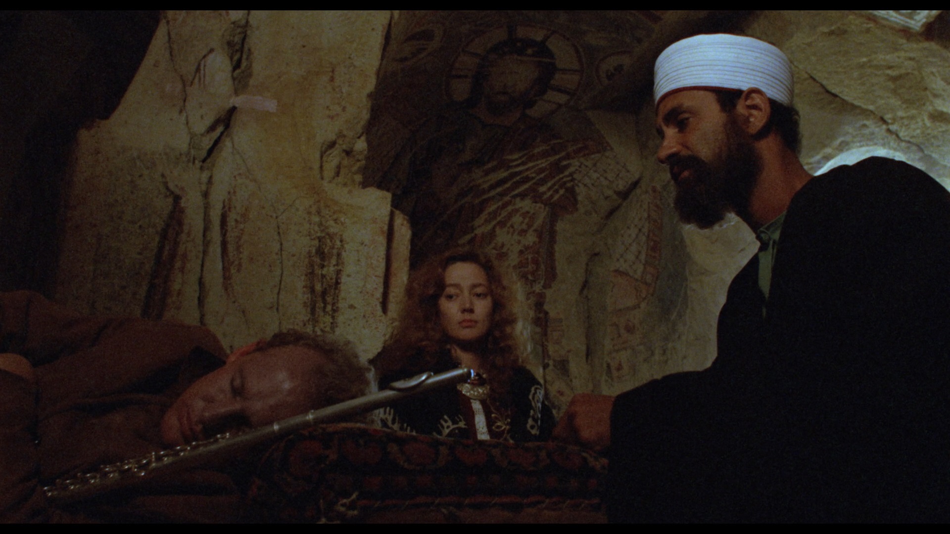biggest surprises on the label's 2009 DVD is the participation of Firth, an actor riding high at the time after Broadway successes like Amadeus and Equus (and later seen on the excellent TV series Spooks, better known to Yanks as MI-5). Fortunately he contributes a fascinating video interview (12m24s) on the DVD to explain a bit about his career choices at the time (he turned down a lot of Hollywood projects, a decision about which he now feels conflicted) and his interest in the source material and director Dehlavi, who largely improvised the film around a framework of concepts to which he'd been exposed since childhood. These influences are explained further in an interview with the director, who admits in retrospect he might have been better following his true love of painting and expounds upon some of the magical ideas he wanted to explore wit4h this film. The challenges of shooting in Turkey (particularly the covert filming of some of the more unclothed sequences) also provides several anecdotal highlights. Last up is actor Shaban (who plays "The Silent One," a mysterious dervish) who talks more about his career