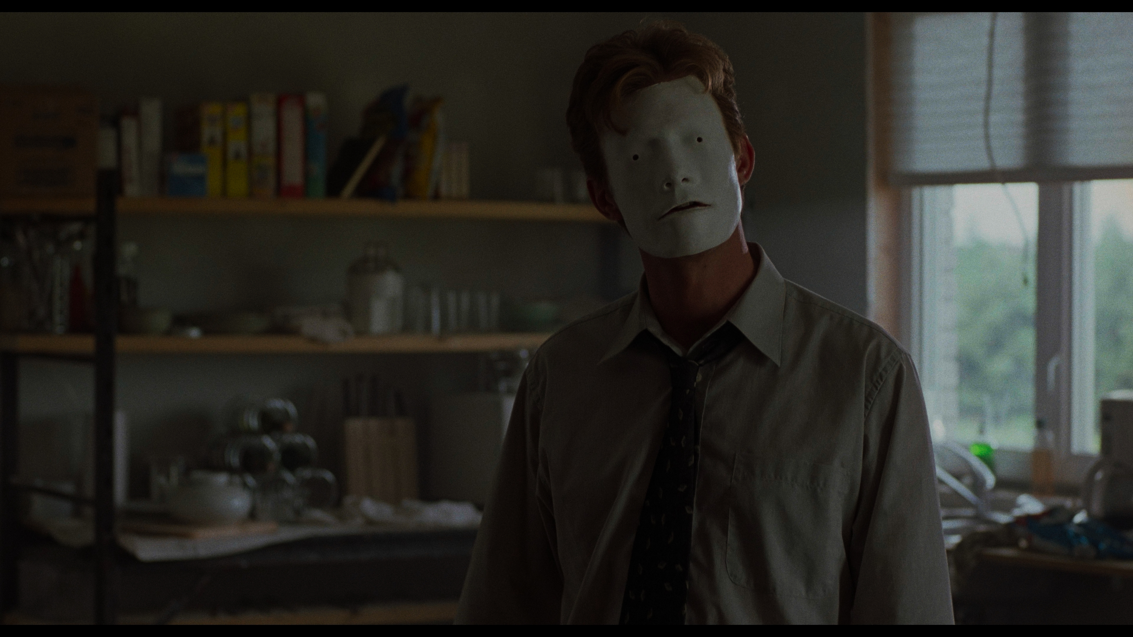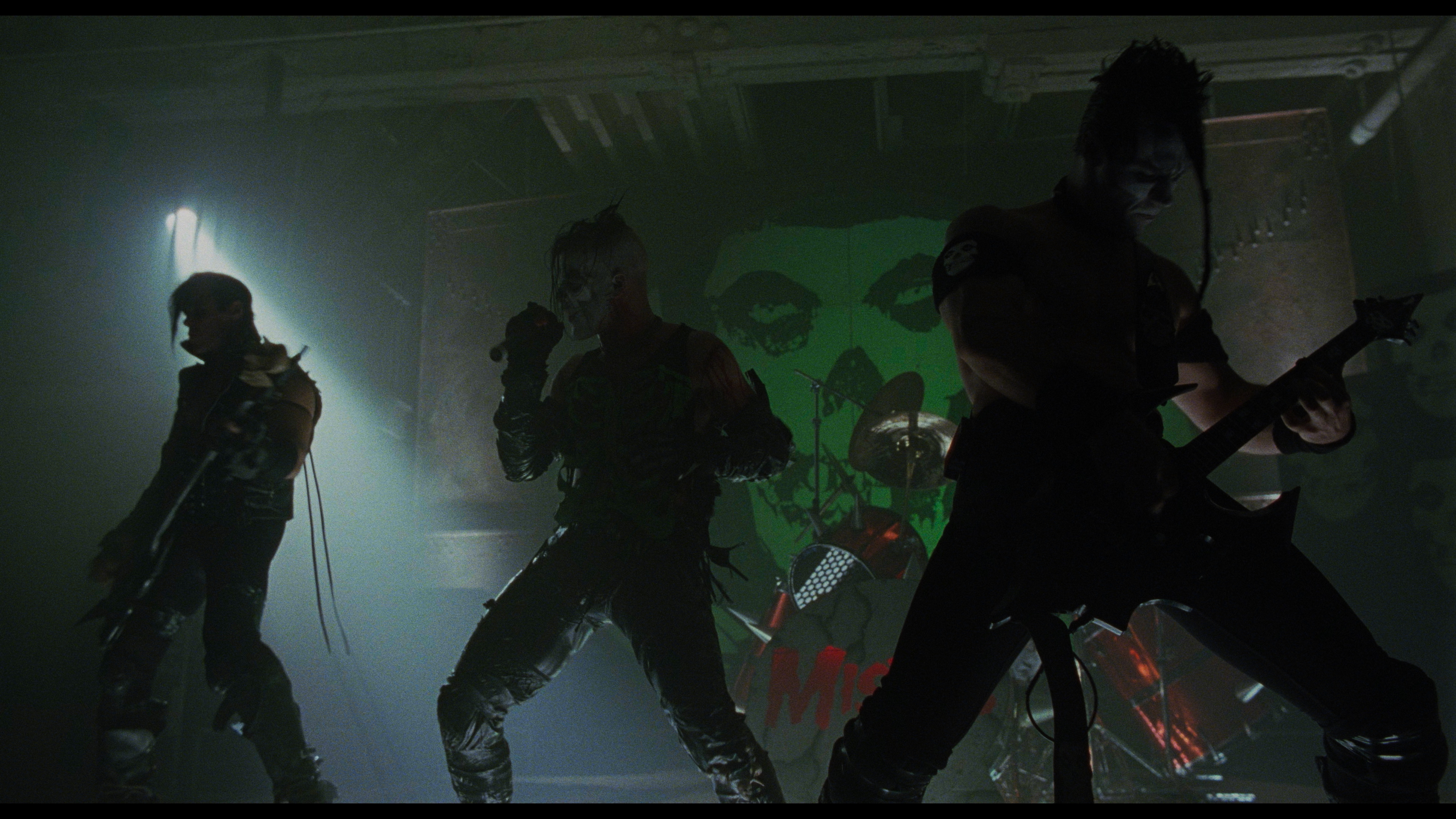 so try 'em both. The original commentary is ported over here, and you also get a previously unheard 2013 Romero conversation (43m42s) with James Blackford largely covering the zombie cycle and his early career but also going all the way up to Land of the Dead (including his budgetary frustration with Dennis Hopper's cigars). "Behind the Mask" (9m26s) is a new interview with Flemyng explaining the sudden demand for him and other Lock, Stock and Two Smoking Barrels actors, the process of getting hired for the film and heading off to Canada, the challenge of wearing that tight mask, and much more, including a very funny Romero impression. In "A Perfect Fit" (8m59s), former Misfits drummer Dr.Chud covers the band's participation in the soundtrack and his extreme joy at working with Romero as well as his positive reaction to the final result. In "The Worm That Turned" (11m44s), Kim Newman studies Bruiser from the perspective of Romero's move away from blue collar stories in the decade leading up to this as well as its place in his bumpy, gap-filled career that made this one easy to overlook. Also included are an intro by Jean-Baptiste Thoret (10m15s) from the Studiocanal release, here subtitled in English for the first time, along with a 1m17s Dr.Chud soundtrack demo, the North American and French theatrical trailers, and a 107-image gallery of photos and promotional material. The package also comes with an 80-page insert book featuring a new essay by Craig Ian Mann ("The Face of Business") about the film's place in office and corporate-themed horror, a 2000 Fangoria interview with Romero on the set as well as a production report by Michael Rowe, a Rowe interview with producer and makeup artist Glenn Hetrick about the music video Romero made for The Misfits at the same time, sample critical responses, and film credits.
