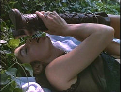 First up is Fancy Lady, directed by exploitation veteran Nick Philips (best known for the zero-budget horror classic Criminally Insane and the sexy Roxanna). Here he barely attempts to construct anything resembling a plot, content to merely follow Uschi on a tour of San Francisco as she plays a Danish journalist, Karin, exploring the city's erotic possibilities in comparison to her own sexually liberated homeland. First she goes to an adult theater where two onscreen women (including softcore vet Lynn Harris) in fetish-inducing leather boots tryst in the woods, and then takes her voyeurism to the next