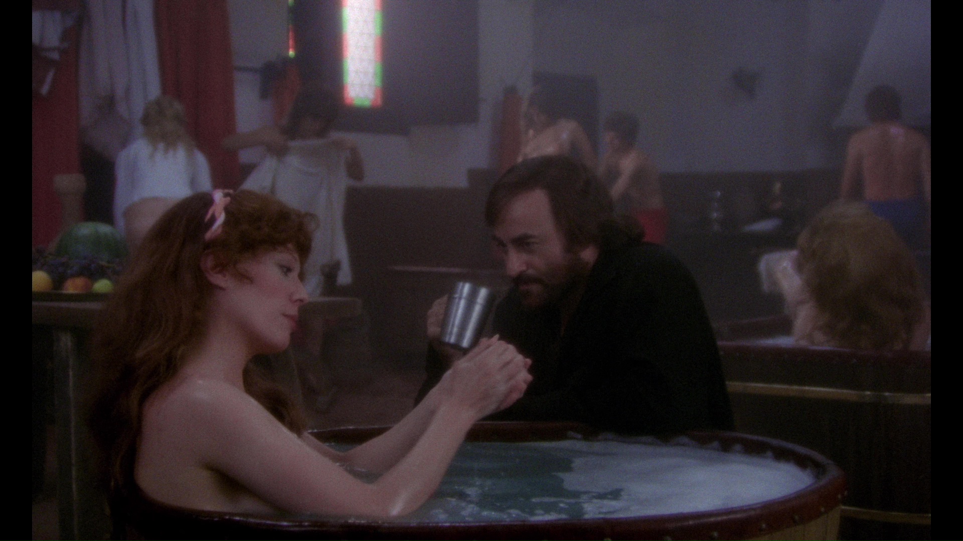 a dark spiritual force at work in this story isn't a major shock when it's revealed at the end, with blatant clues dropped along the way and Naschy making inventive use of blazing, rose-colored light when Leonardo's up to his nastiest shenanigans. It's really the decision to tell this story with such a heavy vein of sardonic humor that comes as the biggest surprise, with the frequent sex scenes justified by the plot as well as a way of celebrating the freedom of storytelling in the recent collapse of heavy Spanish censorship. It's also a beautifully mounted film with a fine eye for color, costumes, and decor, accentuated by a fine score by Angel Arteaga. Interestingly, this could have easily been a religious scare film with just a couple of artistic tweaks, but in Naschy's hands it's more complex and challenging than anything so simple. Some of his flourishes bite off a bit more than they can chew (a sped-up comical sex romp and some freeze framing feel out of place), but others are audacious enough to work against the odds like a chilling intrusion of newsreel footage as a vision of the future.
