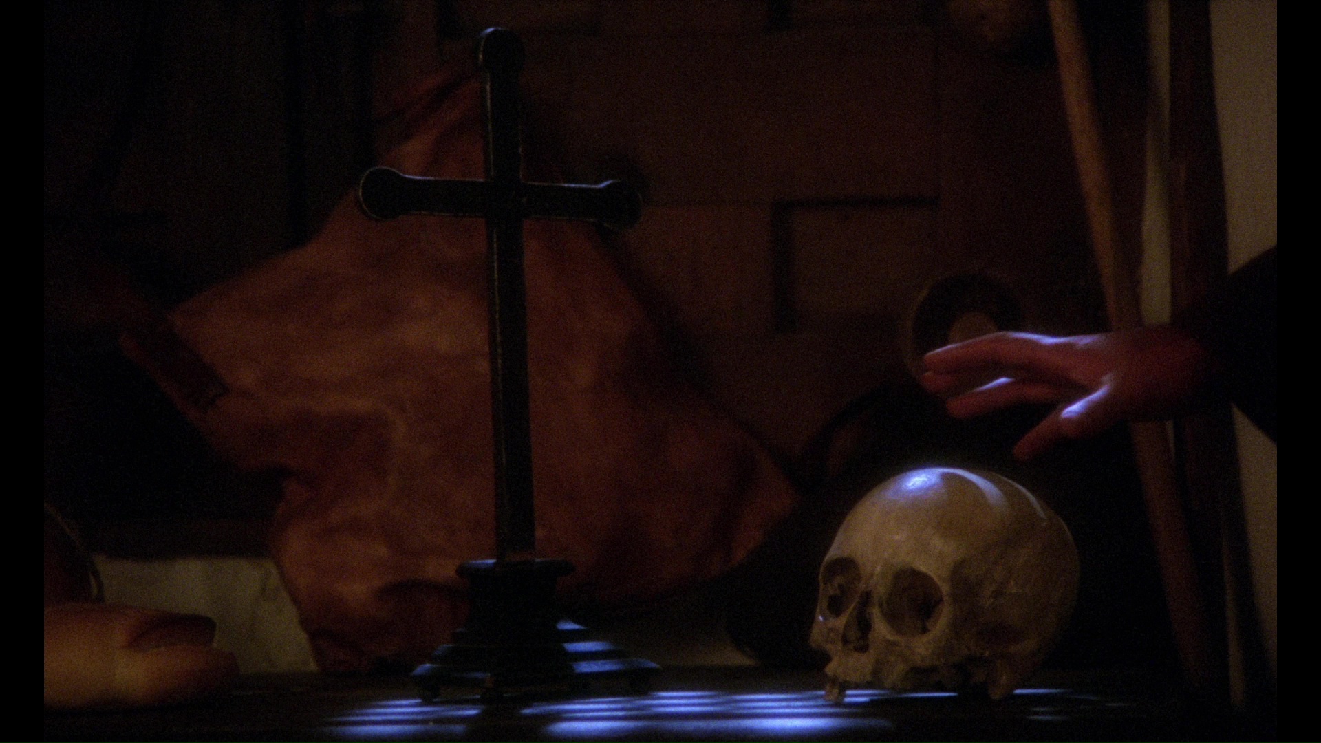 An audio commentary by Troy Howarth (author of the upcoming Human Beasts: The Films of Paul Naschy) takes a in-depth look at the film as a demonstration of Naschy's often undervalued breadth of talent in front of and behind the camera, a pessimistic reflection of his recent unpleasant experiences in the film industry, and a complex meditation on issues that aren't necessarily comfortable by today's standards. He's also full of facts about the various actors and cheerfully unabashed about his admiration for some of their physical appearances. A video intro with the late Naschy (10m30s) emphasizes his pride in the final product as a reflection of his own personal views, with the devil still turning up in guises from politicians to military leaders. Rocha appears for a warm video interview (15m14s) about his long friendship with Naschy (which began before the werewolf films), the directorial advice he received, and the personal suffering Naschy channeled into the characters in this film. Naschy's son, Sergio Molina, appears next for a video tour (9m40s) through the family scrapbooks with lots of anecdotes about his dad's heyday in Spanish cinema, which amounts to a fascinating, casual conversation with one of the people who knew him best. Finally Naschy's son Bruno Molina presents a guided tour (5m30s) through his father's office including a few art and literary surprises as well as, of course, some weightlifting trophies.