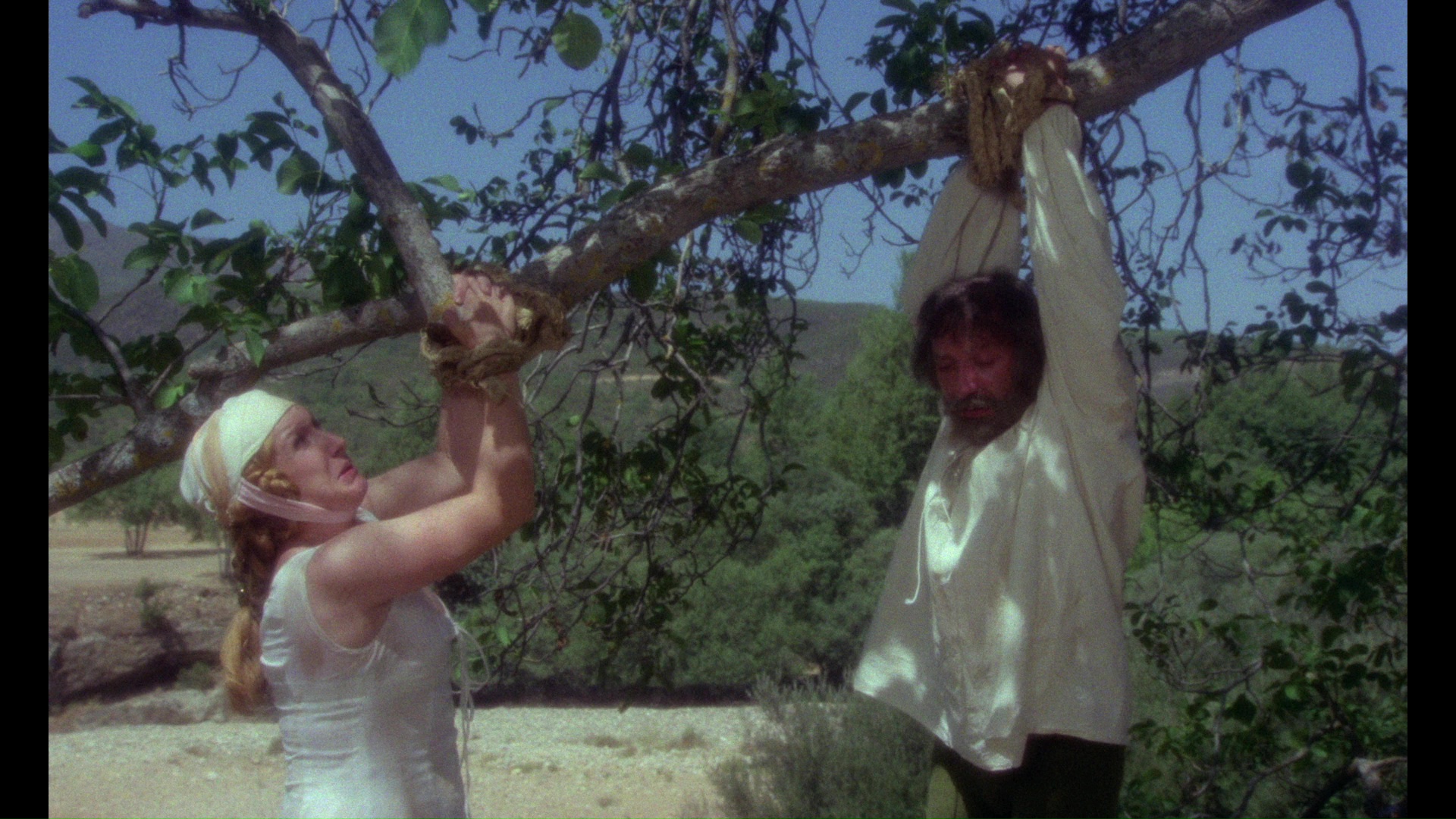 Appearing one afternoon in the countryside, bearded wanderer Leonardo (Naschy) casually murders the first person he encounters and swipes his gold after a personal verbal slight. He then decides to take young, innocent Tomás (Rocha) under his wing for a picaresque string of encounters in the region that illustrate Leonardo's personal views about the easy corruptibility and inherent soul-selling nature of mankind. Leonardo has a particular affinity for taking sexual advantage of the women they encounter, be in a married, crippled farm wife (Aguilar) who ends up getting robbed and having an inverted cross carved on her bare behind (inspiration for the film's most familiar poster art) or making a vicious deal with the widowed Aurora (Lezana) to heal her sick daughter in exchange for carnal favors. Everyone comes out worse after crossing paths with the pair, with even Leonardo himself learning the cost of being human even when his true nature is revealed.