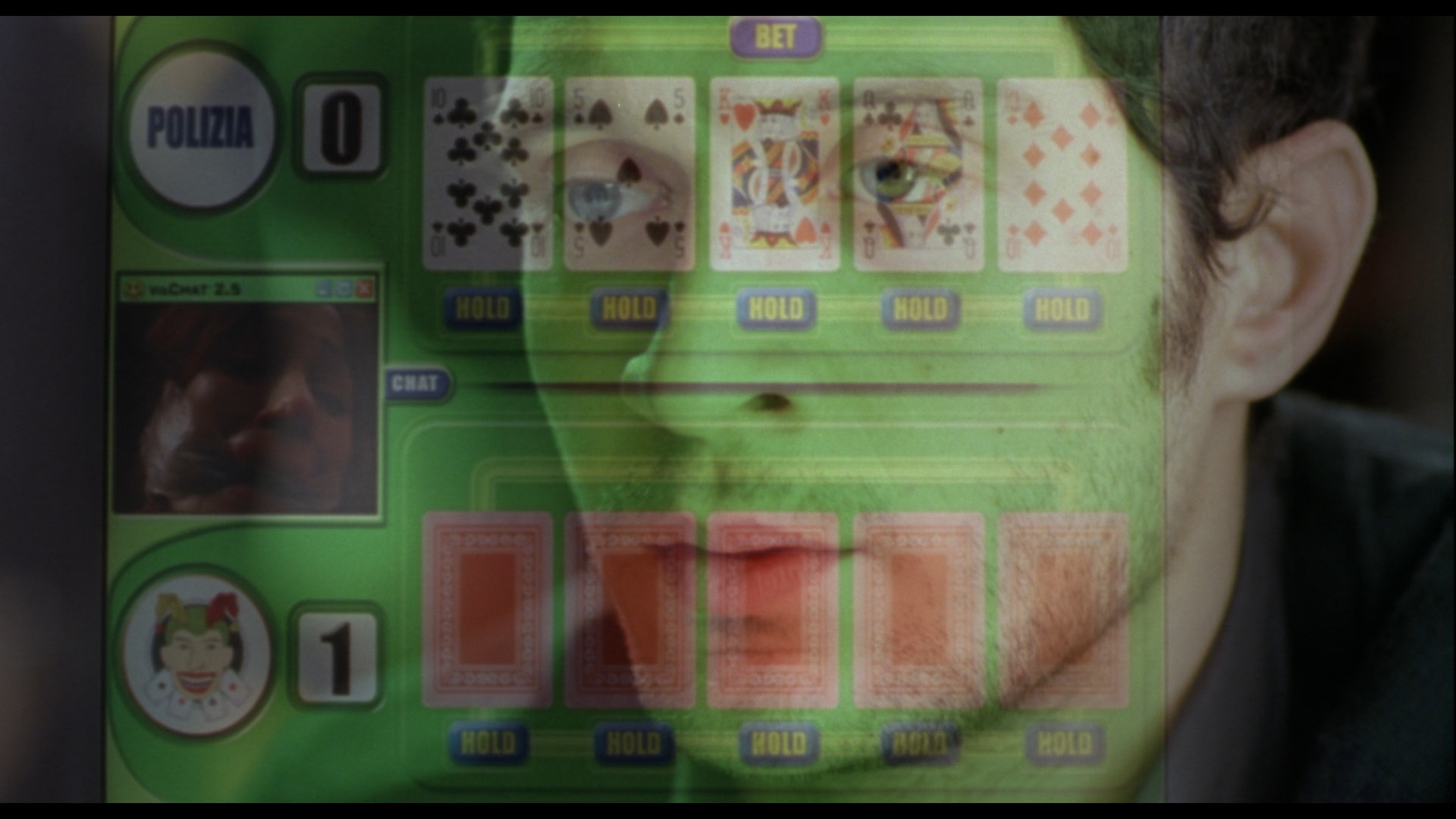 (running the correct speed at 11m54s and 8m50s) in Italian w/German subs, a reel of English-language titles and insert shots (7m30s) for the film versus the Italian ones seen in the main feature (which makes the chat room scenes incomprehensible for English-speaking viewers), and a poor quality 4x3 English trailer. A subsequent German Blu-ray from Sunfilm was also briefly released but was reportedly censored and not available here for comparison.