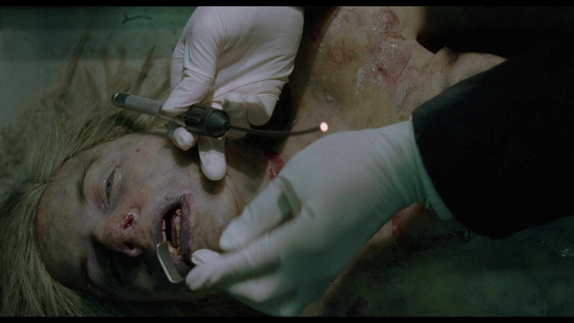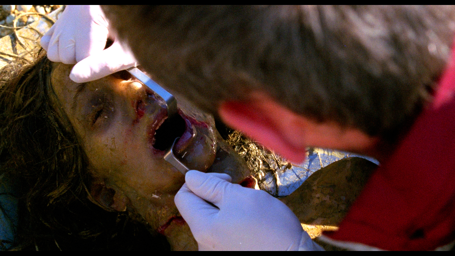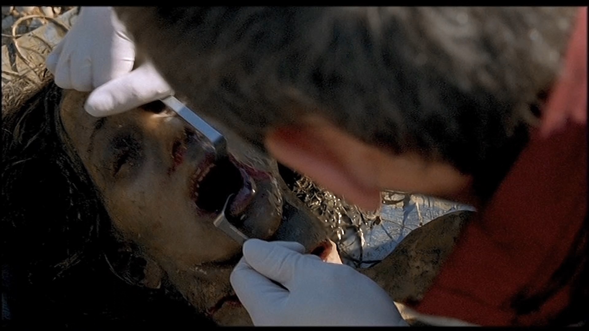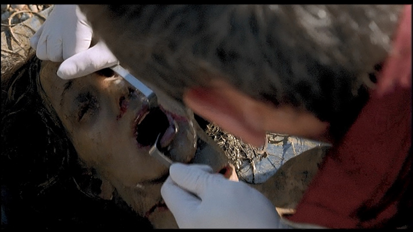 means there are some obvious drops in quality for all the nastier shots involving dead bodies (including the water mouth gush) as well as shifts in aspect ratio; see the second frame grab comparison below for an example. Extras on that disc include the promo and making-of featurettes