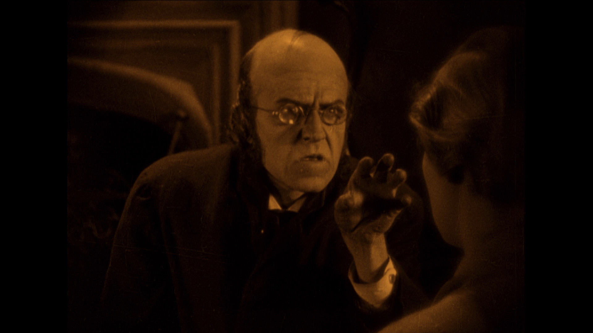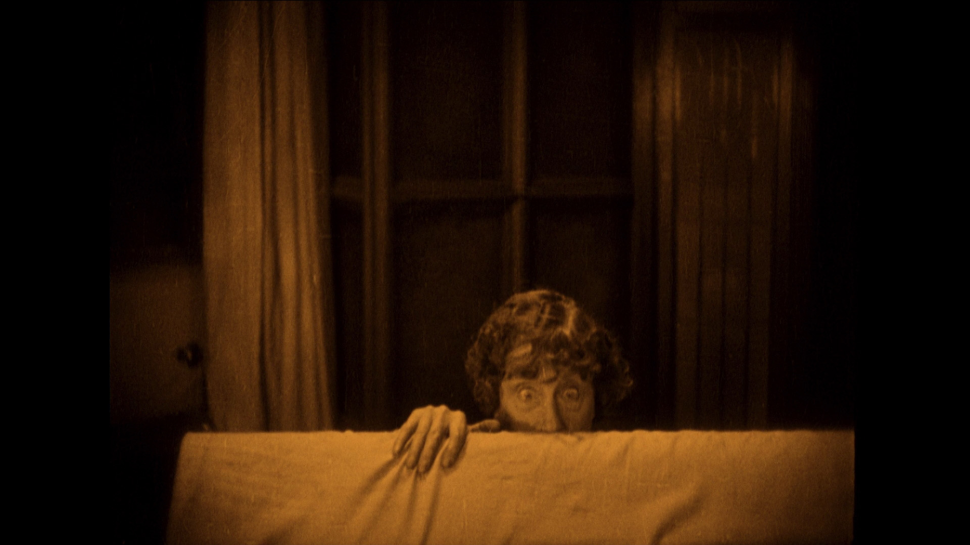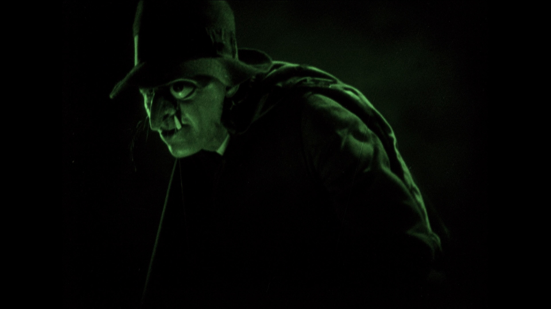 Numerous home video editions of this film have turned up over the years, with the frame rate adjusted wildly in some cases with the running time bloated up to around 100 minutes in some cases. The best options on DVD came from Image Entertainment (in 1998 early in the format's history, using a damaged but respectable master prepared for laserdisc) and a Photoplay Production edition from Kino Lorber in 2004. However, those are all easily surpassed by the much-needed Blu-ray edition from Eureka (one of the U.K. label's first releases across the pond in the U.S.) featuring a beautiful presentation of a 4K restoration of the original negatives from the Museum of Modern Art. The color tinting seen in first-run engagements is restored here a la many other silent classics, featuring blue for outdoor night scenes and the opening, gold for most interiors, and green for some creepy bits in the last third. As beautiful as the restoration is, it's equaled by the marvelous DTS-HD MA 5.1 music track featuring a spooky and sometimes silly score by Robert Israel "compiled, synchronized and edited by Gillian B. Anderson, based on music cue sheets compiled and issued for the original 1927 release," which includes some excellent sound effect
