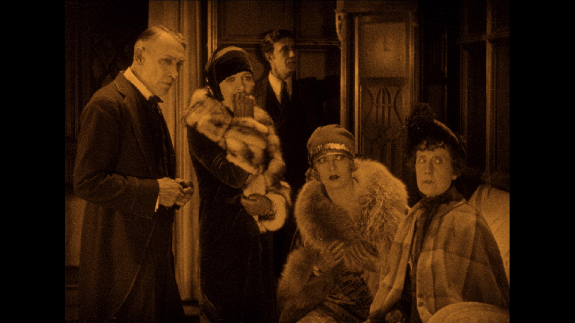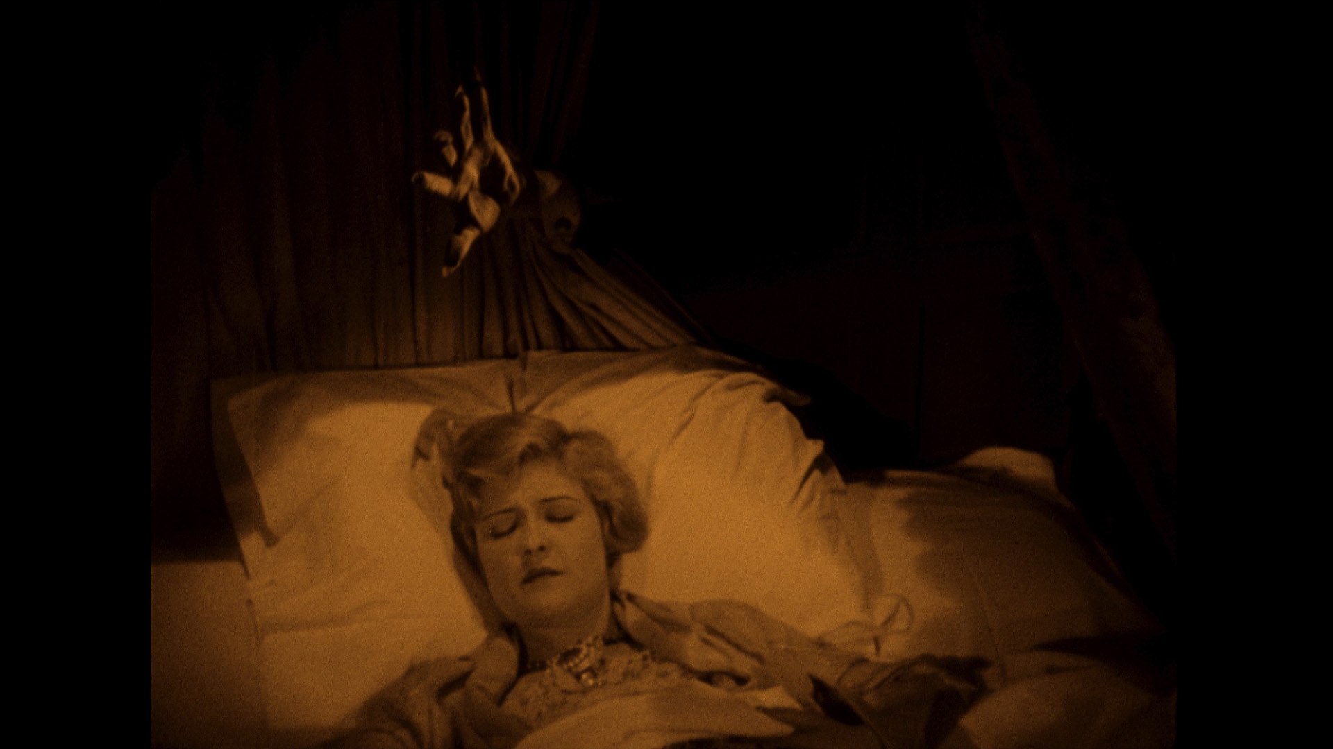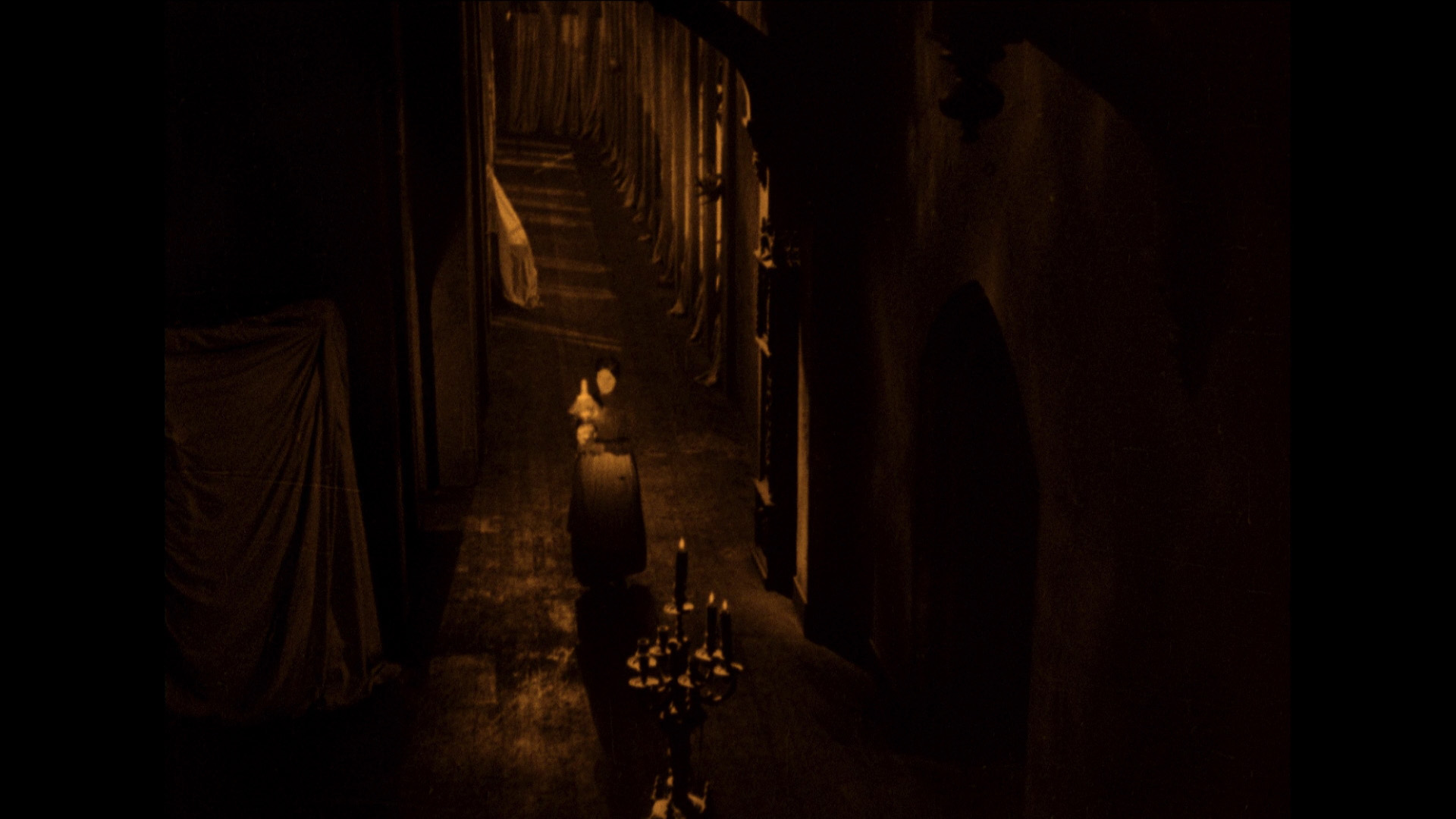 Numerous home video editions of this film have turned up over the years, with the frame rate adjusted wildly in some cases with the running time bloated up to around 100 minutes in some cases. The best options on DVD came from Image Entertainment (in 1998 early in the format's history, using a damaged but respectable master prepared for laserdisc) and a Photoplay Production edition from Kino Lorber in 2004. However, those are all easily surpassed by the much-needed Blu-ray edition from Eureka (one of the U.K. label's first releases across the pond in the U.S.) featuring a beautiful presentation of a 4K restoration of the original negatives from the Museum of Modern Art. The color tinting seen in first-run engagements is restored here a la many other silent classics, featuring blue for outdoor night scenes and the opening, gold for most interiors, and green for some creepy bits in the last third. As beautiful as the restoration is, it's equaled by the marvelous DTS-HD MA 5.1 music track featuring a spooky and sometimes silly score by Robert Israel "compiled, synchronized and edited by Gillian B. Anderson, based on music cue sheets compiled and issued for the original 1927 release," which includes some excellent sound effect