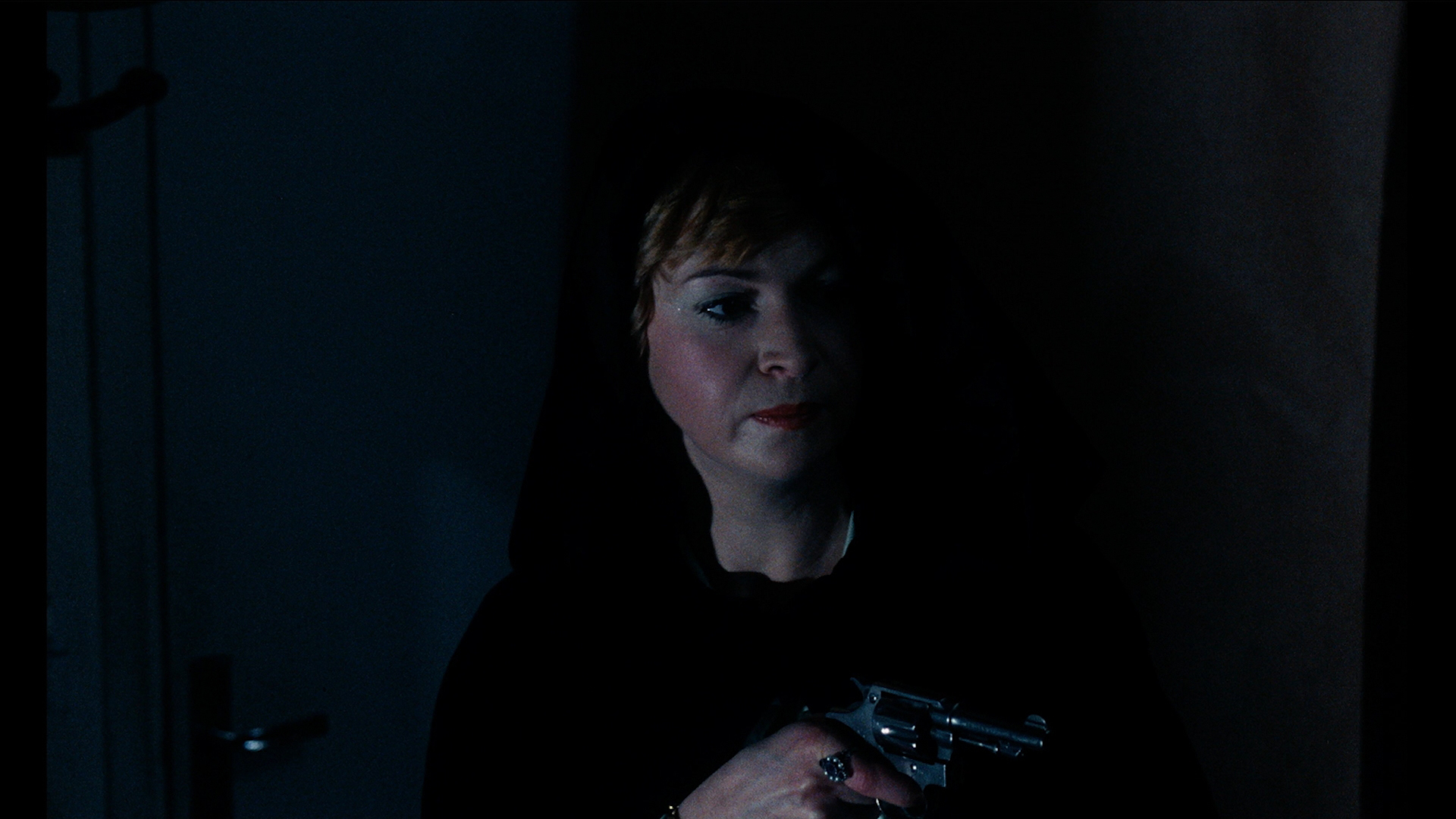 "Elsewhere Man" (27m42s), author Matthieu Orléan extrapolates more on Vecchiali, his own film production company, his possible views on pornography, and the impact he had in cineaste circles despite not being as famous as peers like Truffaut. In "Noir D'Amour" (24m), screenwriter Noël Simsolo recalls meeting Vecchiali in the '60s due to similar cinematic tastes, their crafty collaborative process to get state subsidies, and the idea exchange that gave birth to this film. "A Remedy for Chaos" (18m45s) features Mézières herself talking about getting her first big break with Jean-Pierre Mocky on the great No Pockets in a Shroud, her deep attraction to show business, being cast in this film at Simsolo's suggestion, using Humphrey Bogart as the inspiration for her wardrobe, her giddiness at shooting that insane climax, and later working with Andrzej Zulawski. Finally in "The Prodigal Son" (11m31s), actor Jean-Christophe Bouvet gives a great look back at how he got into the business through André Téchiné, his insistence on getting naked in his movies, his desire to become a director, the sexual freedom in the air after 1968, and his own perception of his character's psychology. Finally the disc wraps up with a new U.S. trailer edited by Nathan Boone.