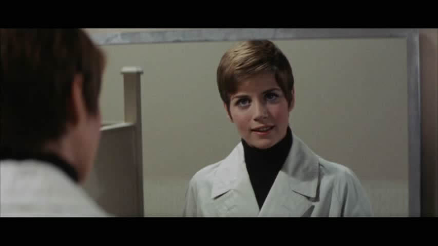 After half an hour of time-jumping flashbacks, he whips his car right off the road and hitchhikes his way to civilization, where he stops to reclaim his innocence on a children's playground and winds up hopping in the car with reporter Kristine (Strassman). Together they take time out for a student outdoor rap session where Julie asks questions about sex, philosophy, and major life changes, followed by a visit to an anti-war demonstration. (And just for kicks, you get some cool black-and-white scope footage of a burlesque commercial for "Virile" shaving cream worthy of Skidoo!) Kent and Kristine shack up together but he still feels dissatisfied, spending lots of time wandering around, hanging around a carnival eating cotton candy with a big-haired southerner Julie (The Sweet Ride's Carey), embarking on another relationship that might bring him closer to figuring out what he really wants.