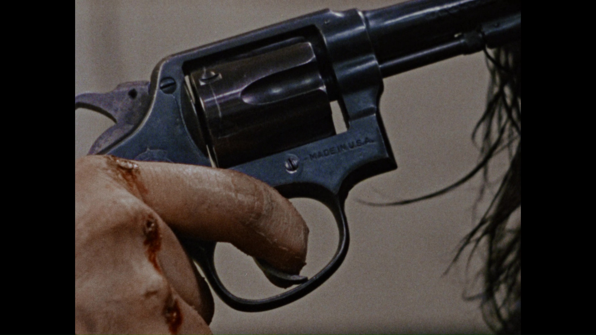 If it sounds like that release was the final word on the subject... well, it wasn't. In 2018, Severin Films issued a limited 2,000-unit Blu-ray edition featuring a vastly superior new scan of the film (using a 4K scan of the 35mm internegative and 2K inserts from Buddy's personal 16mm answer print), with remastered English DTS-HD MA 2.0 audio from the mag tracks with much more presence than before. It's not a "pretty" film in any conventional way, of course, but this is likely as good as it's ever going to get. This is also the complete American Nightmares cut, with that title card intact.