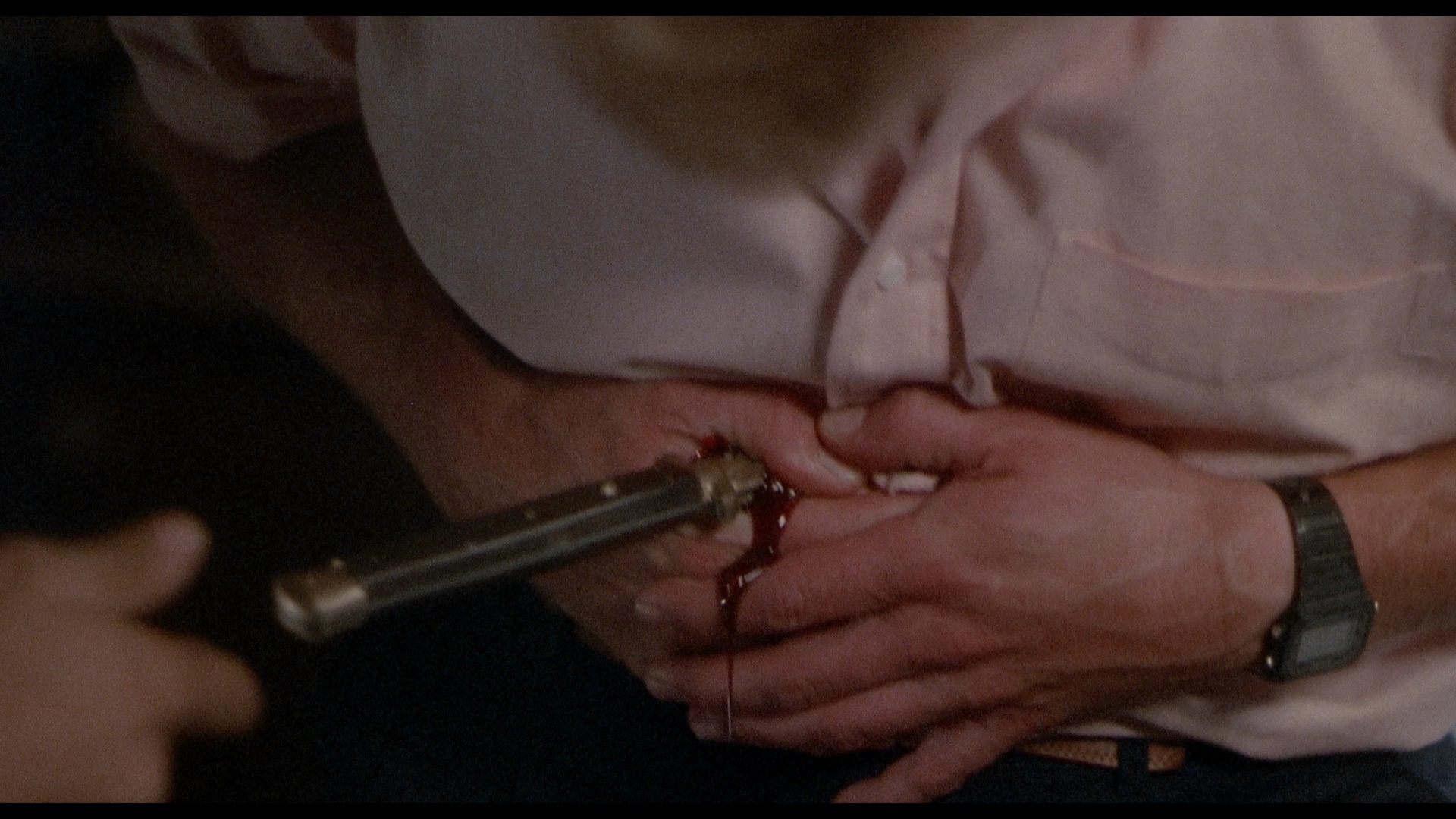 the twisted psychodrama I Dismember Mama, writer-director Paul Leder kept chugging along delivering a string of idiosyncratic oddities ranging from the 3-D stunner Ape to low-budget curios like Red Light in the White House and My Friends Need Killing. Very much in the Leder mold is his stab at a sentimental slasher film, The Eleventh Commandment (or The 11th Commandment to go by the title card), which barely got a release in the waning days of distributor Manson International (Savage Streets) and got a low-profile 1988 VHS release from Forum Home Video. Now the film has been revived for the first time in decades by Vinegar Syndrome after a peculiar ownership route through Orion and then MGM, its current owner, and its quirky mash up of genres and tones has a better chance of playing with viewers today.