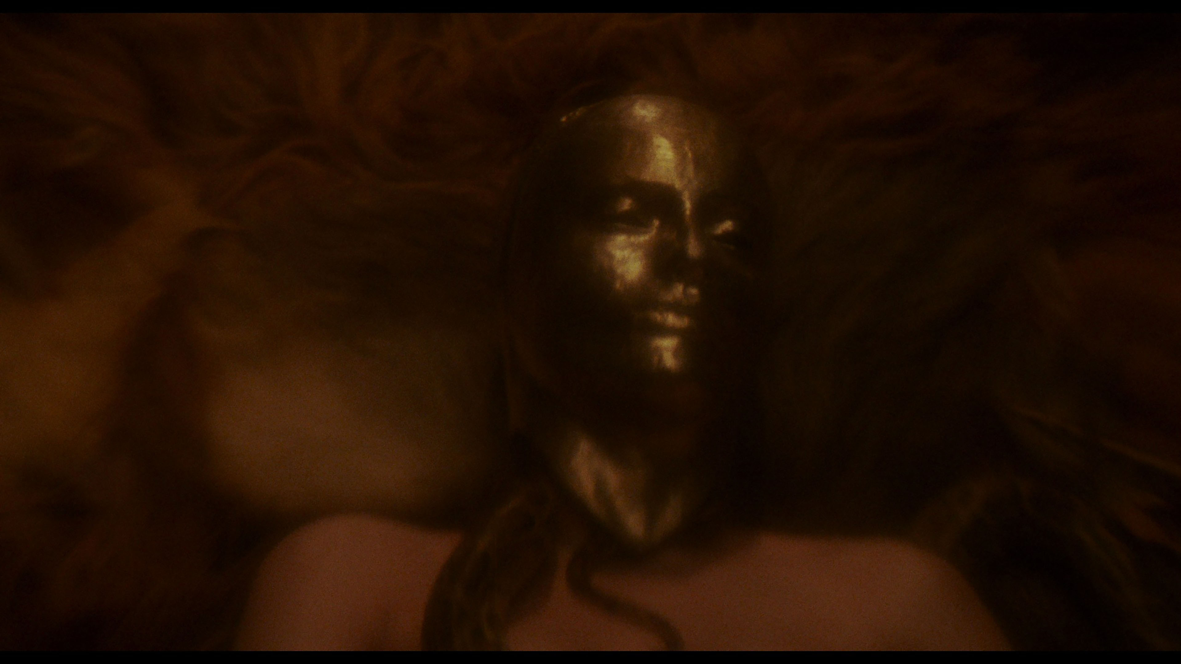 In the visual essay "The Arsenal of Fantasy" (14m32s), Heather Wixon surveys the genre trends in Italy in the '80s and how this film slots in with the fantasy boom of the era against Hollywood films like Excalibur, Clash of the Titans, and Dragonslayer with Fulci doing this as part of a two-picture deal that was never completed. Then in "Conquering Occhipinti" (12m55s), Pier Maria Bocchi looks at the Italian actor-turned-producer's refusal to look back at and discuss his work, his wild and busy output over his fairly brief acting career (which also included A Blade in the Dark, Bolero, and Miranda among others), in line with other reluctant figures like Edwige Fenech (or Mimsy Farmer, Laura Gemser, etc.). In "Fulci Beyond Conquest 1983-1988" (29m15s), Mike Foster covers the post-De Angelis Fulci output in the '80s which essentially continued the little side projects he had thrown in earlier like Contraband or The Black Cat while his health became an insurmountable challenge with Sodoma's Ghost and Touch of Death far removed from where we started. Then you get the Conquest-inspired short film Serurta (42m55s) with a 10-minute intro by creators Merlyn Roberts and Steven Lyonsonquest; this is essentially a remix of Fulci's film with a fur-clad warrior stalked through the woods by a horde of decapitating, face-painted savages, before encountering a masked naked woman and indulging in some trippy pagan rituals. Also included are the U.S. trailer and the battered "grindhouse" version of it from the earlier Blu-ray. The limited edition slipcase release with art by Justin Coffee (plus a completely NSFW Johnny Ryan sticker sheet) also comes with a booklet featuring essays by Michael A. Martinez and Andrea Meroni assessing the film's positives, its appeal to initiated Fulci-ites, its odd place in the fantasy film canon, and the symbiotic relationship between Spain and Italy including the former's technical crews and locations.