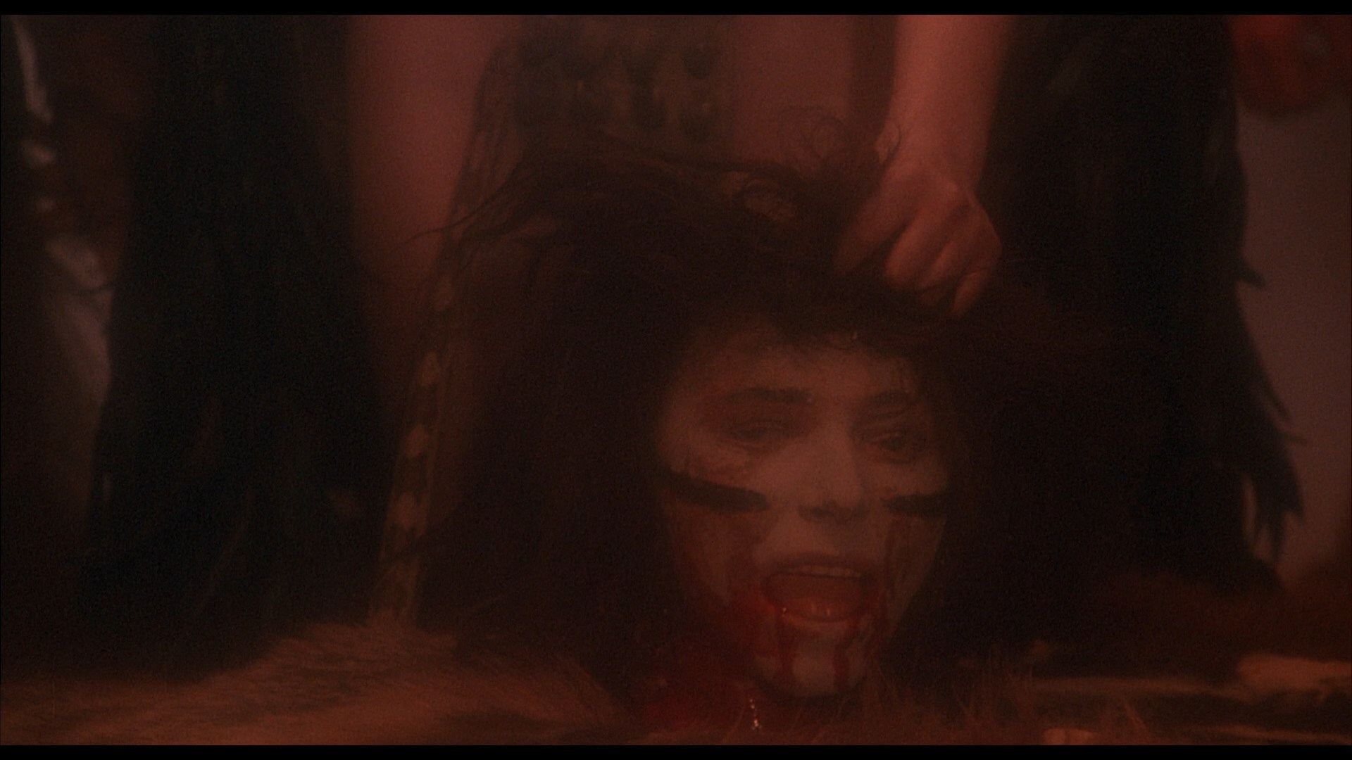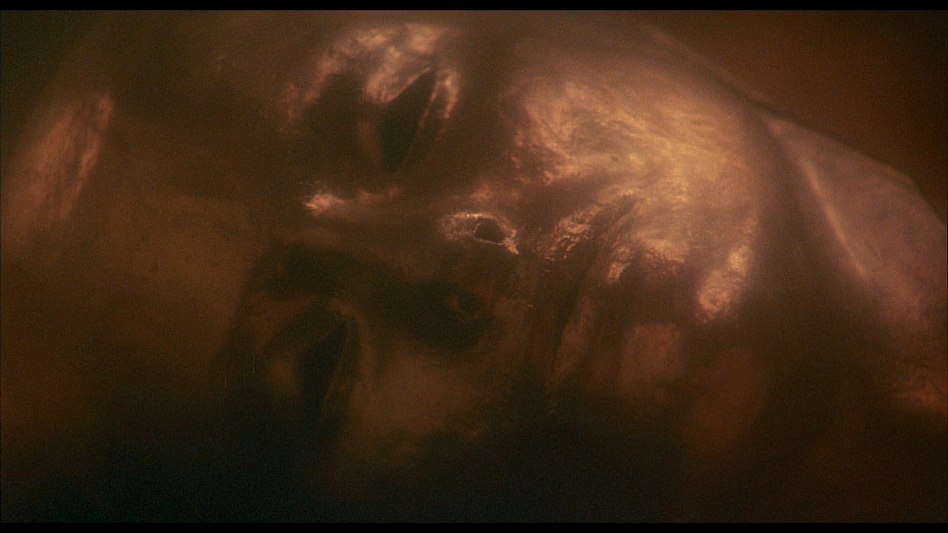 In 2026, Cauldron Films upgraded Fulci's film to UHD as part of a four-disc(!) set also featuring two Blu-rays and a soundtrack CD (in the limited edition only), with 15 tracks clocking in at 38m9s. It's the first expanded presentation of the score ever on CD and sounds better here than the iffy 2016 vinyl pressing from Rustblade with the same tracklist. (A 9-track version was released on CD in 1998 by Beat Records on a disc with Aenigma and You'll Die at Midnight, recycled again a few times as a bonus with some German home video releases including some highlights with Manhattan Baby.) Obviously the idea of bestowing an HDR10-compatible Dolby Vision grade on a 4K scan from the negative of this film might seem like a head scratcher, but this is a case where the results in motion definitely look better with more finely resolved film grain and, as far as it creeps though, detailed textures. The UHD has deeper blacks and a somewhat richer, duskier look than the Blu-ray, but both are fine options and as good as this film could probably look. The DTS-HD MA audio options include English 2.0 mono (if you want to relive the tape experience) or 2.0 stereo or Italian 2.0 mono with English subtitles. All of them sound fine, but the English stereo track has always been the best way to experience the madness of this film at full intensity. Also included is a new audio commentary by Eugenio Ercolani and Nanni Cobretti who deliver a thorough assessment of the film's box office misfortune and the questionability of its timing, as well as the state of Fulci's career, the nature of Italian crossover productions with other countries, and much more.