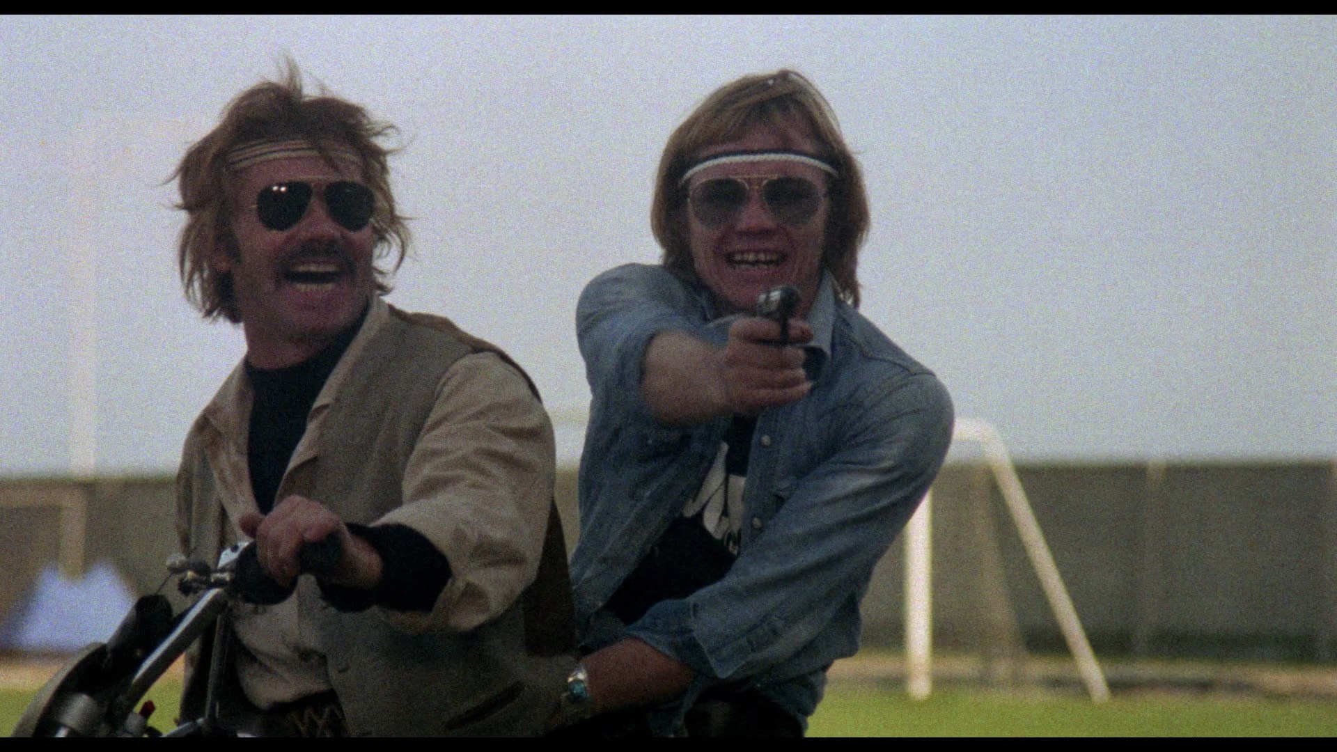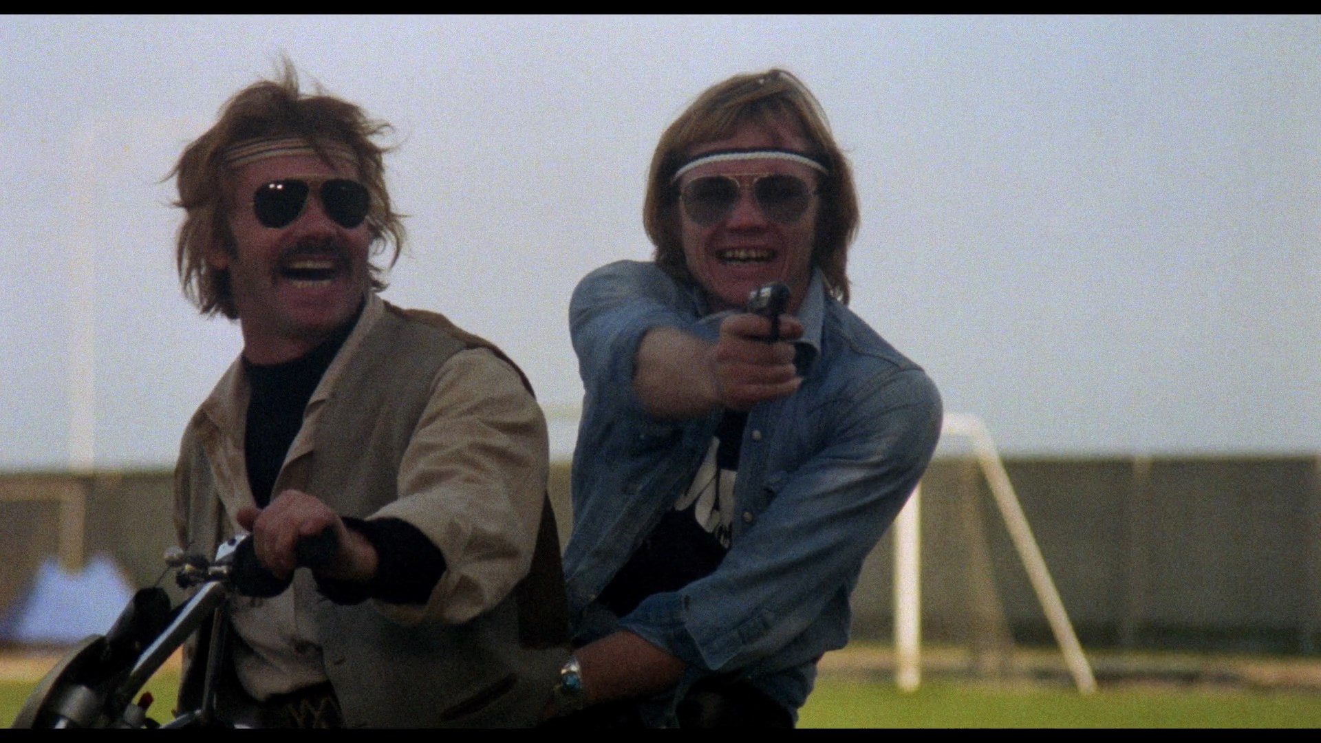 In 2022, Cauldron Films brought Convoy Busters to U.S. Blu-ray for the first time featuring a 2K scan from the camera negative. Given the framing and overall presentation it appears to be from the same film source as the German disc, but the color timing has been slightly improved and, most significantly, it features far better compression than the German disc which tended to make all the very grainy outdoor scenes turn into a swarming nightmare of digital noise at times. Comparison caps can be seen below, though the difference is far more evident in motion. It's also worth noting that a handful of close-up shots in the first reel have a moderate horizontal squeeze to them, but that's always been part of the film and isn't a defect of the transfer. The Italian and English tracks are here sounding solid