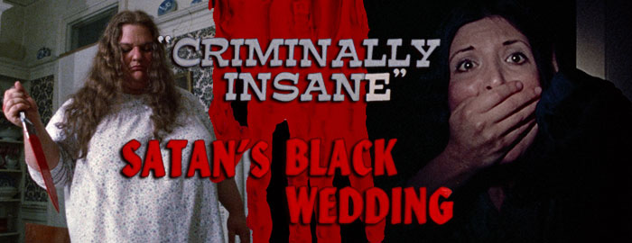 The history of exploitation is Criminally Insanefilled with directors who bounced back and forth between horror and erotica, though no one Criminally Insanehad a track record quite like the bizarre one of San Francisco filmmaker Nick Millard, who went by numerous pseudonyms over the course of his career. Even today the full extent of his output hasn't been firmly established, with several titles playing at one or two theaters before vanishing or never being released altogether. However, the one title of his that broke through to significant cult popularity, albeit over a very long period of time, is his wild proto-slasher Criminally Insane, which is driven by the astonishing performance by Priscilla Alden who reprised her role in 1987's shot-on-video Criminally Insane 2 (a.k.a. Crazy Fat Ethel II) and starred in two sorta-non-Millard slashers, Death Nurse and Death Nurse 2. This one also spawned a 2016 remake and would seem ripe for some maniacal theater kids to put on a Sweeney Todd-style musical someday, but there's really no replacing the original which packs quite a bit of insanity into its one-hour running time. Shot in 1973, this one was released in 1975 and sold around as a package deal with another one-hour Millard wonder, Satan's Black Wedding, an occult extravaganza that mixes Satansim, vampirism, and experimental techniques into a moody little offering that's stuck with the first feature on both DVD and a 2024 Blu-ray from Vinegar Syndrome.