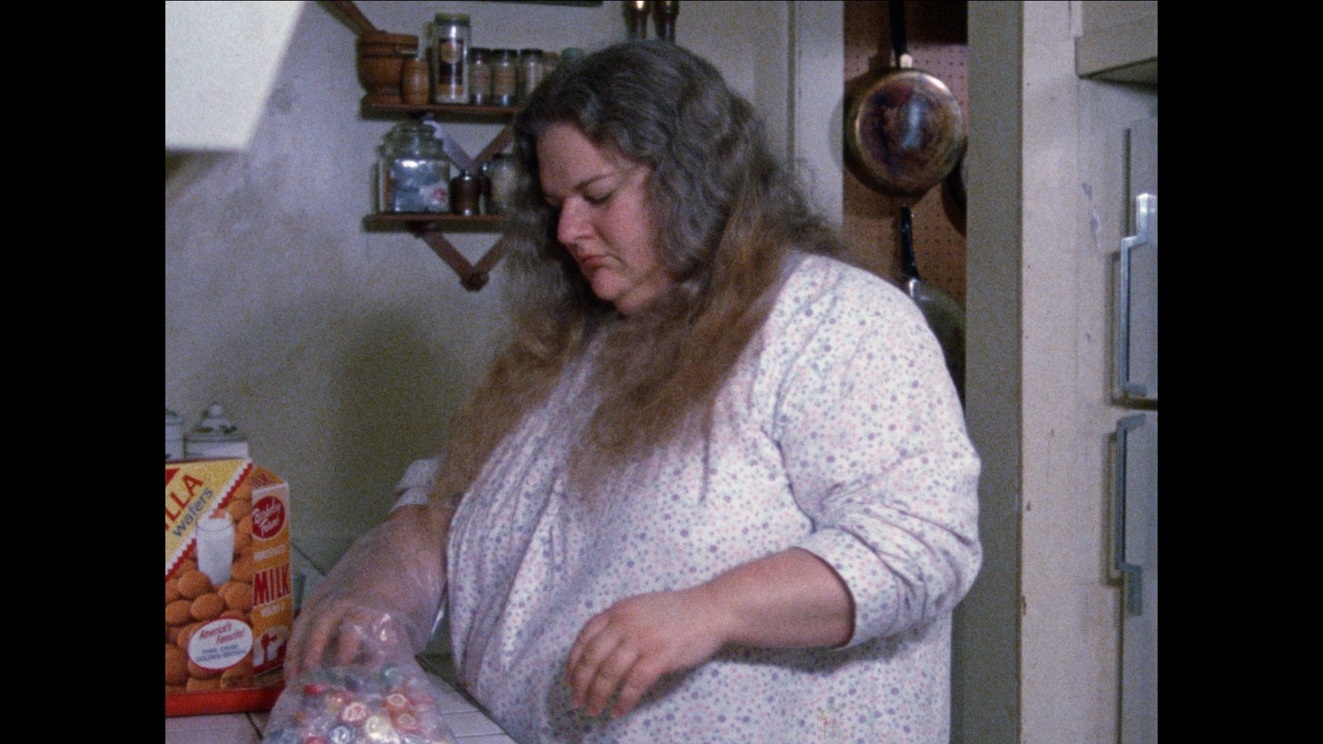 Despite her doctor's reservations, the hefty Ethel Janowski (Alden) is released from a mental institution into the care of her grandmother Criminally Insane(Lambert) who promptly locks up the food cupboards to keep Ethel down to three reasonable meals a day. Criminally InsaneNeedless to say, Ethel doesn't take kindly to being separated from the food supply and goes berserk with a kitchen knife. Soon others are falling prey to her homicidal, food-driven mania including a grocery delivery boy, but things get complicated with the arrival of Ethel's hooker sister, Rosalie (Farros), who then invites her jerk pimp boyfriend John (Flood) to move in as well. Obviously this will not go well.