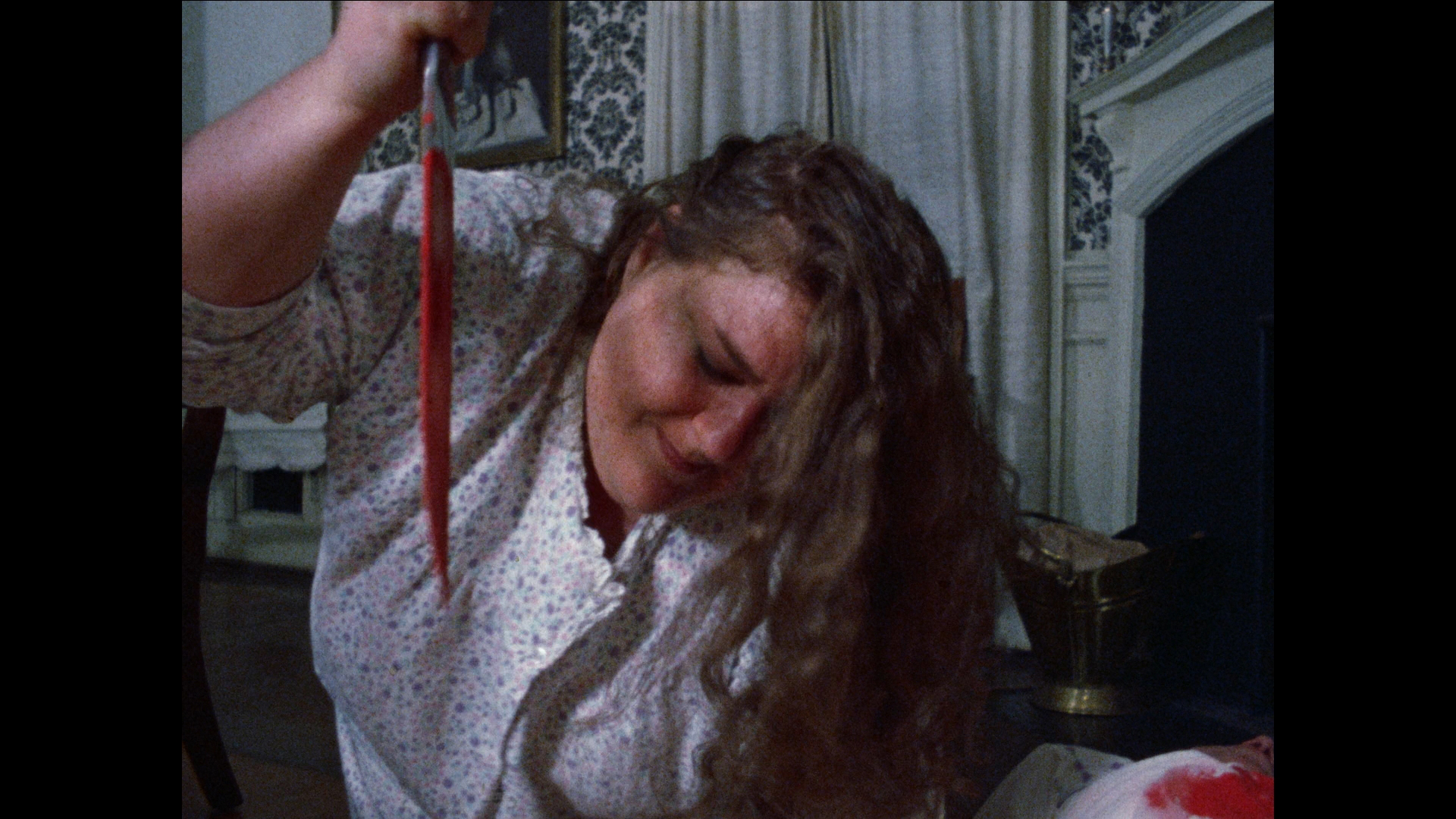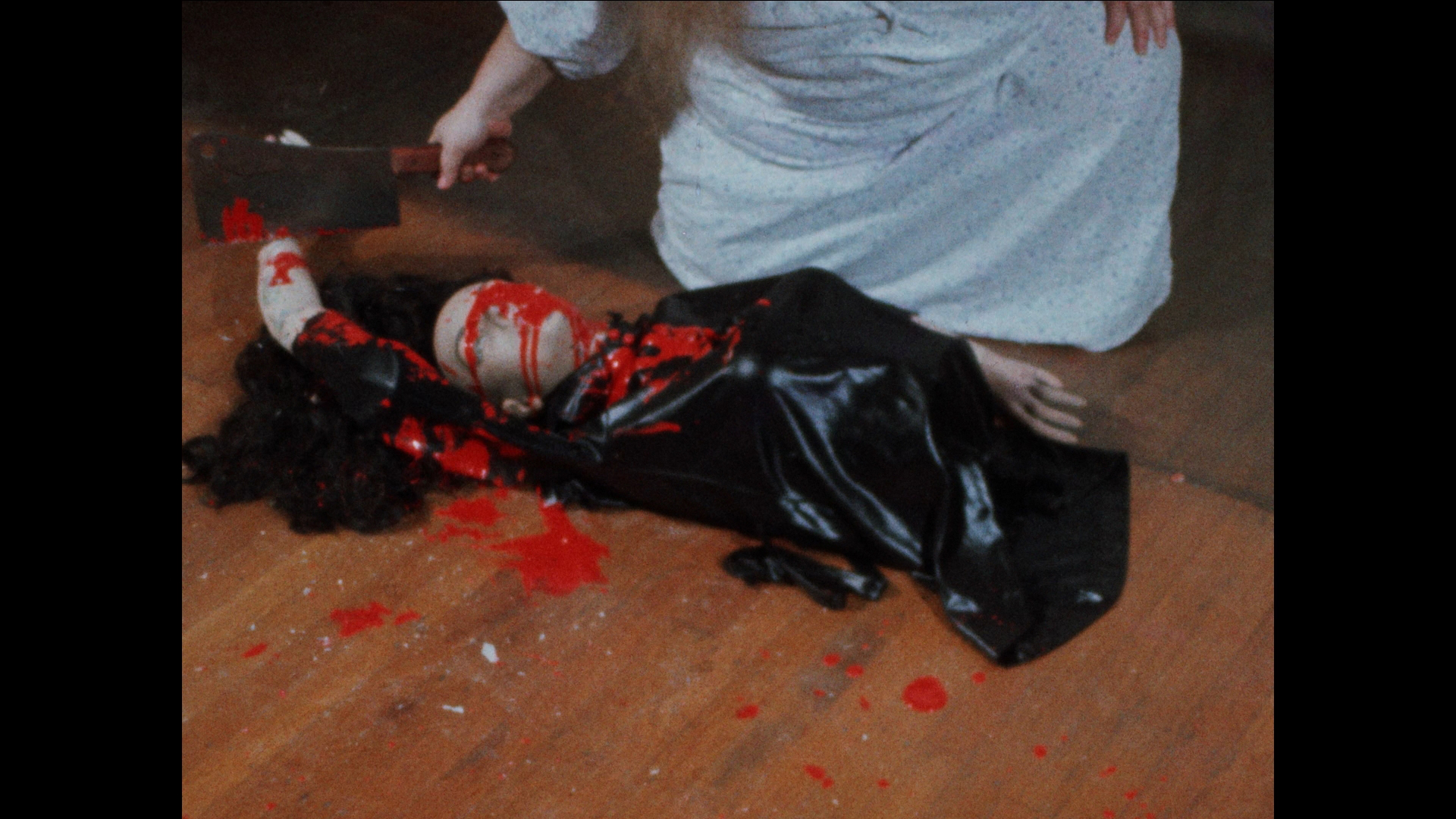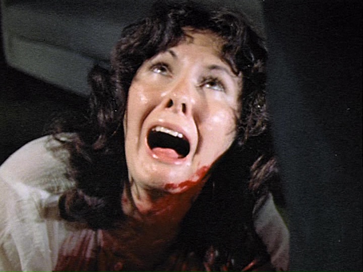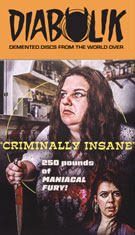 With its generous splashes of paint-style blood and mounting number of bodies piling up inside the house, Criminally Insane plays its study in psychopathic behavior a lot straighter than the campy approach you might expect. The result is off-kilter and compelling, with Ethel making for a memorable protagonist whose laser-honed focused on getting her fill of Nilla Wafers has you weirdly rooting for her, even against the obligatory investigating cop played by veteran character actor and occasional sex film guest George "Buck" Flower. It's no wonder this one caught dedicated VHS hounds' attention back in the '80s when its distinctive, bright yellow VHS box from World Video Pictures seemed to be in every single mom and pop store around, and coverage by genre mags like Deep Red continued to bolster its reputation. In 2005, E.I Independent Cinema's Shock-o-Rama line issued this on DVD with Satan's Black Wedding and Criminally Insane II all on one disc. Extras include audio commentaries by Millard and Irmi Millard moderated by 42nd Street Pete, plus standalone video interviews with Millard about Criminally Insane (7m19s) and Satan's Black Wedding (5m1s) and a joint one with Alden (9m42s) about their collaborations together, with the star looking a lot more elegant here than in her signature role!