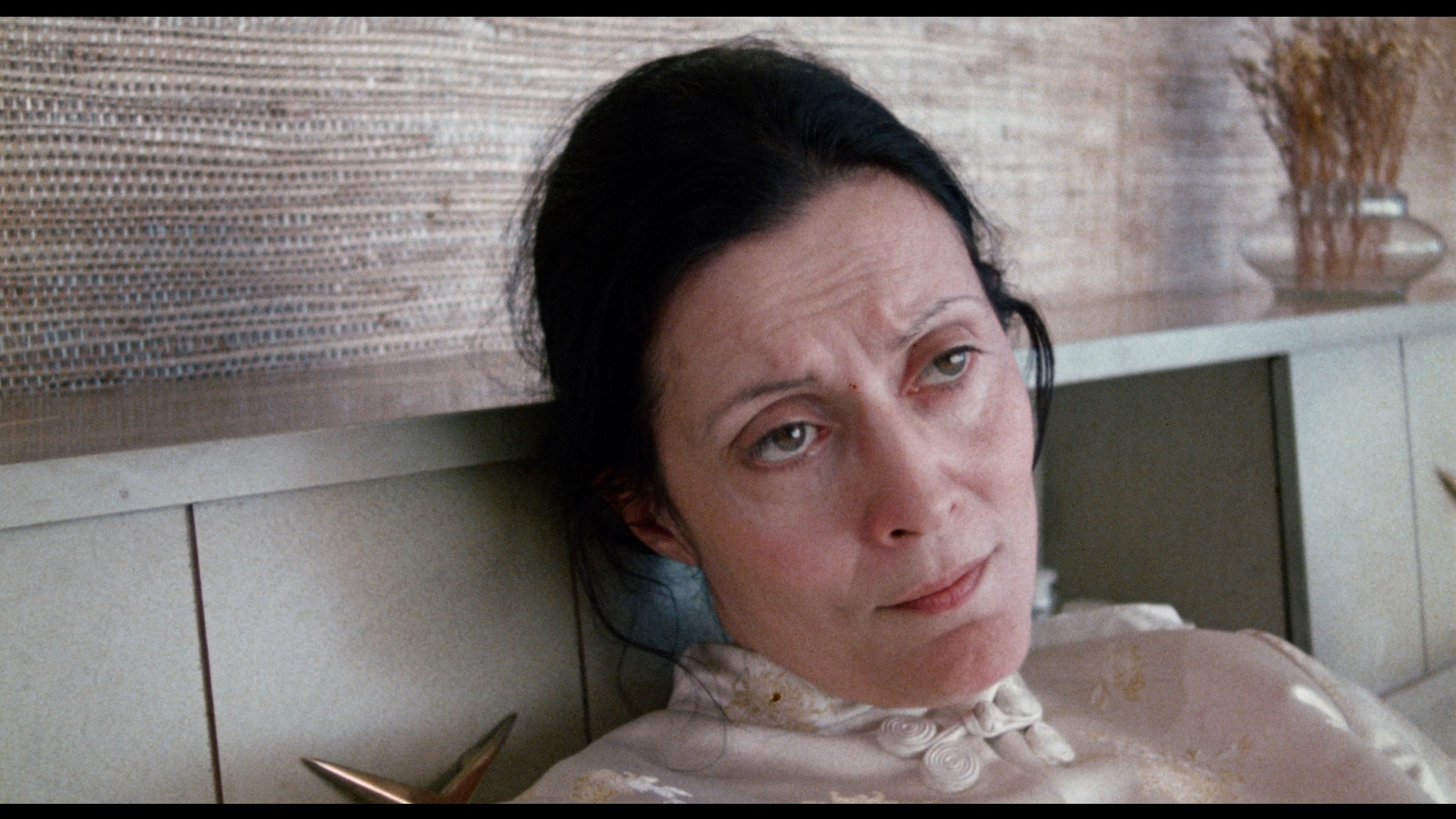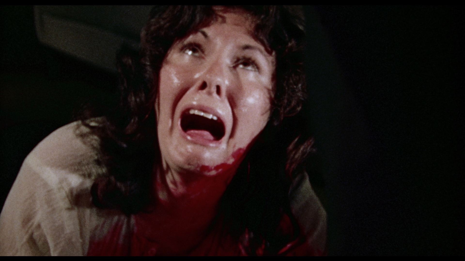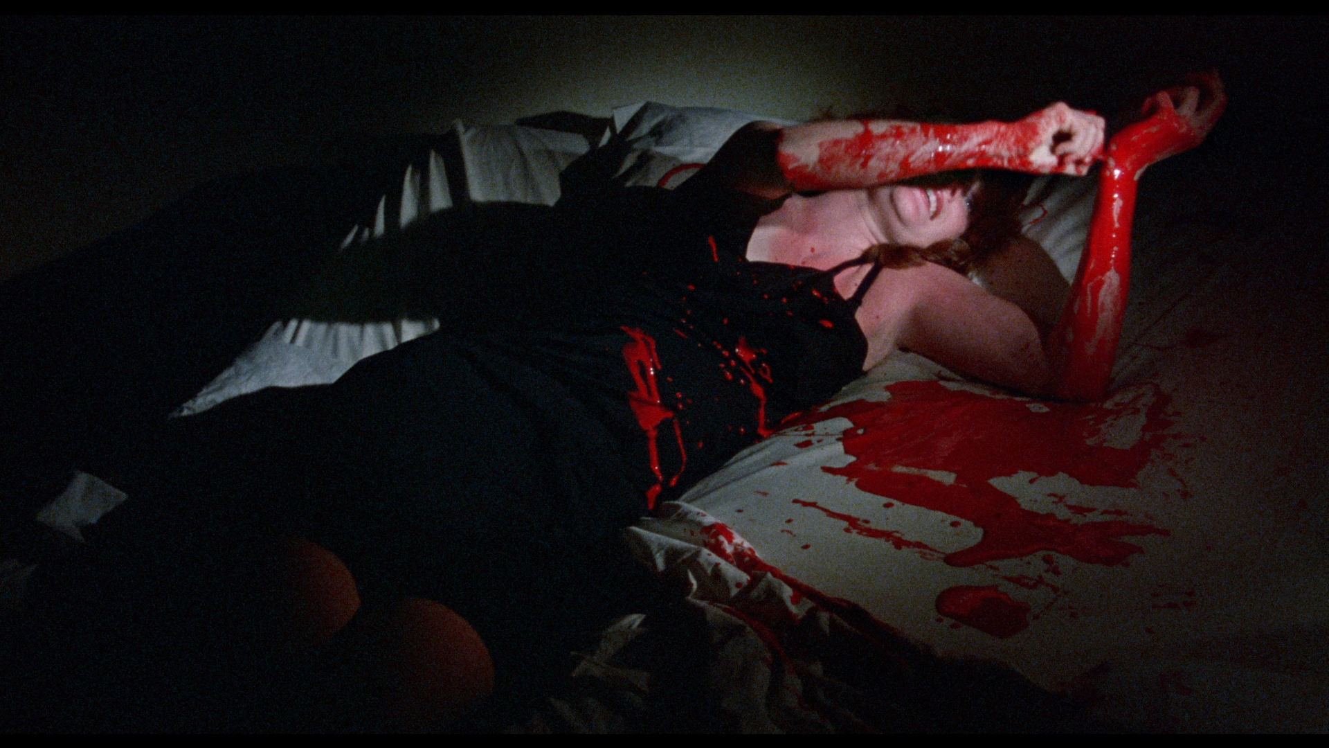 With its generous splashes of paint-style blood and mounting number of bodies piling up inside the house, Criminally Insane plays its study in psychopathic behavior a lot straighter than the campy approach you might expect. The result is off-kilter and compelling, with Ethel making for a memorable protagonist whose laser-honed focused on getting her fill of Nilla Wafers has you weirdly rooting for her, even against the obligatory investigating cop played by veteran character actor and occasional sex film guest George "Buck" Flower. It's no wonder this one caught dedicated VHS hounds' attention back in the '80s when its distinctive, bright yellow VHS box from World Video Pictures seemed to be in every single mom and pop store around, and coverage by genre mags like Deep Red continued to bolster its reputation. In 2005, E.I Independent Cinema's Shock-o-Rama line issued this on DVD with Satan's Black Wedding and Criminally Insane II all on one disc. Extras include audio commentaries by Millard and Irmi Millard moderated by 42nd Street Pete, plus standalone video interviews with Millard about Criminally Insane (7m19s) and Satan's Black Wedding (5m1s) and a joint one with Alden (9m42s) about their collaborations together, with the star looking a lot more elegant here than in her signature role!
