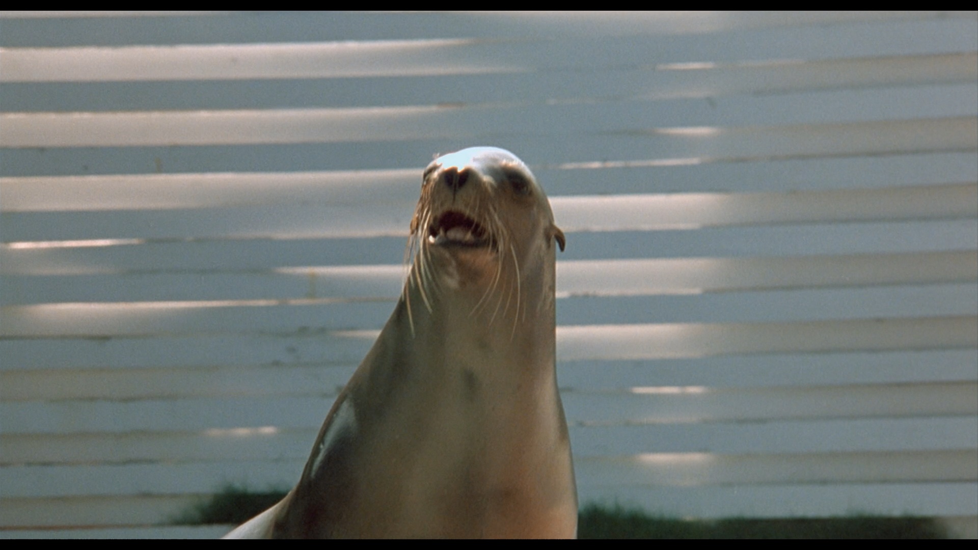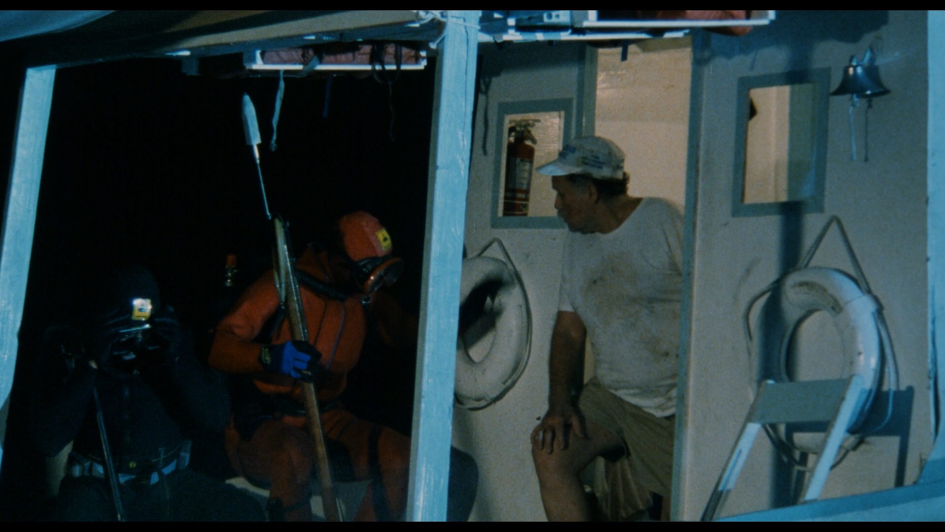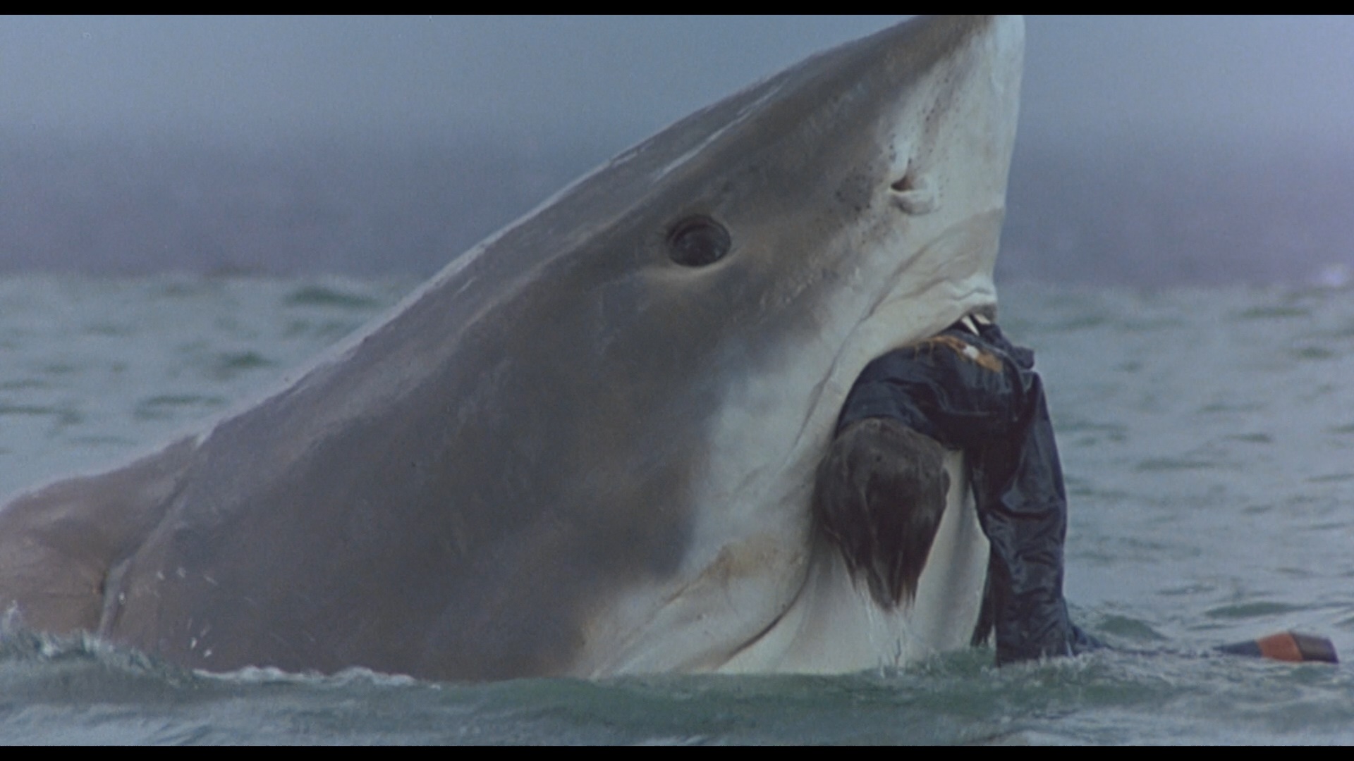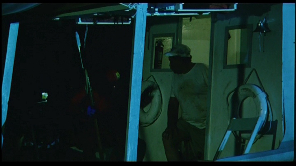 In 2006, Cruel Jawsthe film made its DVD debut from German label Cine Storm (as Shark Terror: The Beast) featuring a letterboxed transfer (with German, English, and Italian audio options) running 92m15s and featuring a pair of innocuous deleted scenes (1m38s) in German only. Later it was initially announced by Scream Factory in 2014 as a co-feature with Exterminators of the Year Cruel Jaws3000, but that ended up falling by the wayside with that latter title coming as a standalone release instead. In 2020, Severin Films came to the rescue by giving Mattei's trashterpiece the red carpet treatment it deserves with separate Blu-ray and DVD releases along with a variety of bundle iterations and other swag options including a toilet decal, a bandanna, and best of all, a new novelization that ramps up the sex and violence. The film is presented in two viewing options, the Mattei cut (the standard theatrical version) and a longer "Snyder cut" (ha ha) billed as the "extra-violent Japanese cut," which... isn't actually much more violent but does incorporate that extra deleted footage. Surprisingly, these are completely different scans with significant variations in color timing and framing; see a few comparison grabs below, but if this is your first viewing, definitely go with the Mattei cut as it looks the best of all the available options and has superior pacing. Surprisingly, this one went all out on the audio front with a bona fide Dolby Spectral Recording track for the English audio (using live sound for the American actors), which is represented nicely here with a DTS-HD MA 2.0 track that decodes well to a very active surround mix; optional English SDH subtitles are also provided. Then watch the Snyder cut because you really can't have enough Cruel Jaws in your life. Also included is "The Great White Way" (20m37s), or "Sharksploitation: An Appreciation" as it's called on screen, with Rebekah McKendry covering the barrage of marine-themed nature attack films that poured out in the wake of Jaws' blockbuster success in 1975 including water-phobic fare like Tintorera, Piranha, Alligator, Devilfish, Orca, Ghost Shark, and The Shallows. Then "These Things Got Made!" (12m), a Skype interview with actor Jay Colligan, covers the film's production including the actors' attempts to grapple with the translated script, the despicable nature of his dolphin-poisoning character, the location shooting at Theater of the Sea in the Florida Keys, the highly dubious nature of some of the effects scenes, the attempt to release this as Jaws 5, and the desire to do "the best we could, whatever that was!" The lengthy, utterly shameless theatrical trailer is also included.