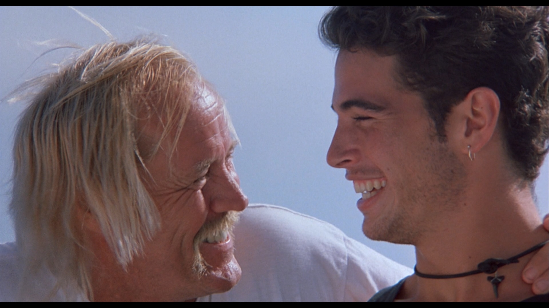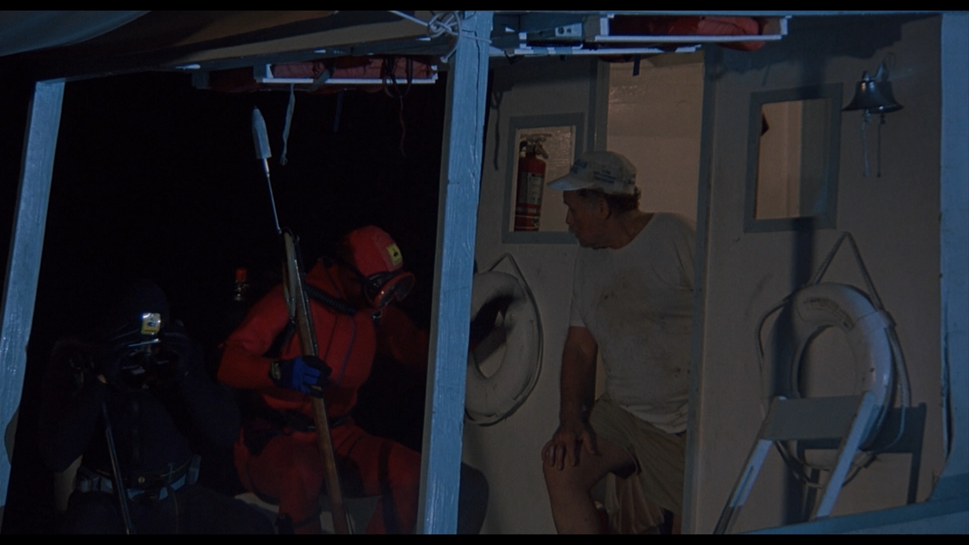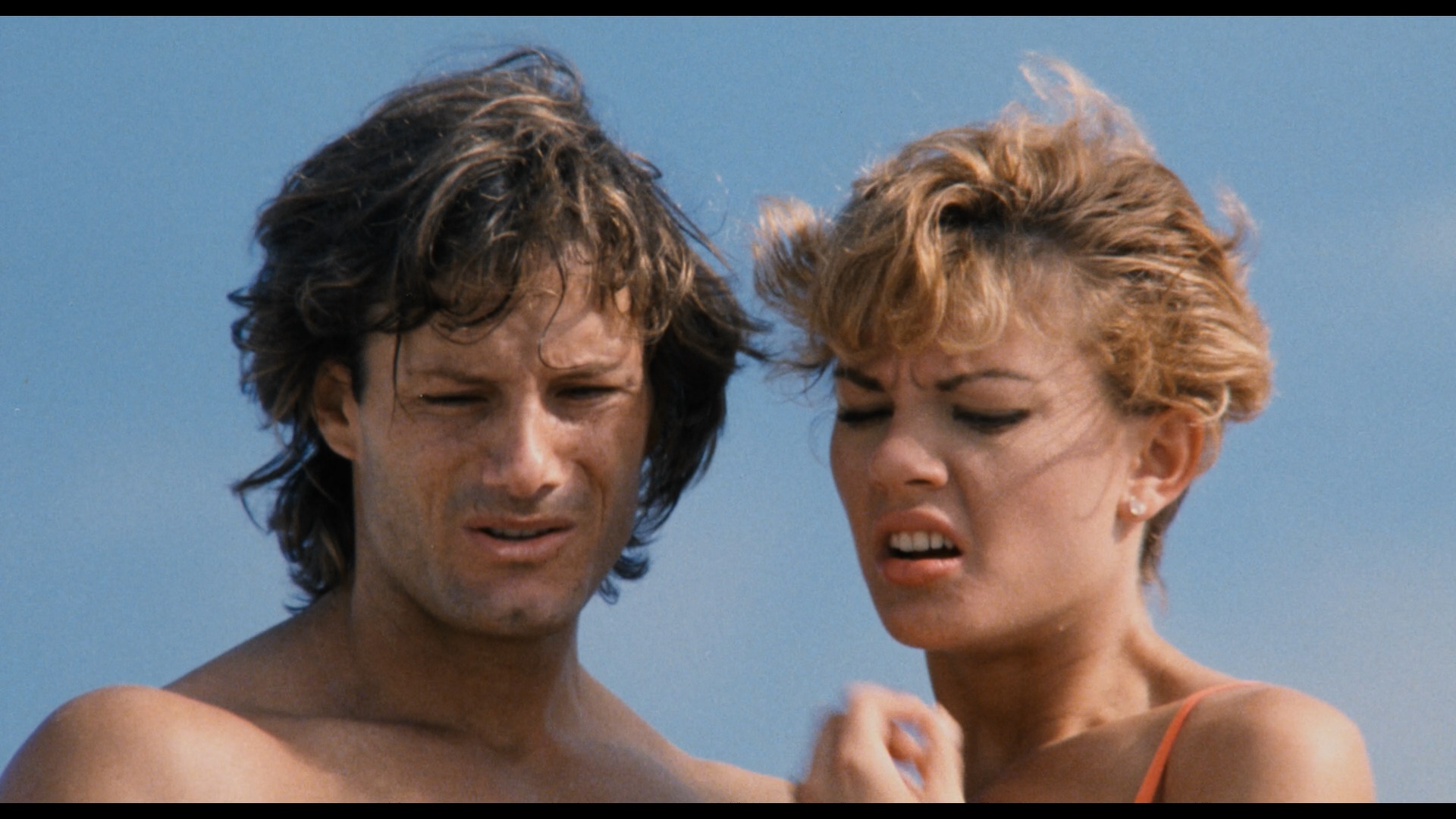 In 2006, Cruel Jawsthe film made its DVD debut from German label Cine Storm (as Shark Terror: The Beast) featuring a letterboxed transfer (with German, English, and Italian audio options) running 92m15s and featuring a pair of innocuous deleted scenes (1m38s) in German only. Later it was initially announced by Scream Factory in 2014 as a co-feature with Exterminators of the Year Cruel Jaws3000, but that ended up falling by the wayside with that latter title coming as a standalone release instead. In 2020, Severin Films came to the rescue by giving Mattei's trashterpiece the red carpet treatment it deserves with separate Blu-ray and DVD releases along with a variety of bundle iterations and other swag options including a toilet decal, a bandanna, and best of all, a new novelization that ramps up the sex and violence. The film is presented in two viewing options, the Mattei cut (the standard theatrical version) and a longer "Snyder cut" (ha ha) billed as the "extra-violent Japanese cut," which... isn't actually much more violent but does incorporate that extra deleted footage. Surprisingly, these are completely different scans with significant variations in color timing and framing; see a few comparison grabs below, but if this is your first viewing, definitely go with the Mattei cut as it looks the best of all the available options and has superior pacing. Surprisingly, this one went all out on the audio front with a bona fide Dolby Spectral Recording track for the English audio (using live sound for the American actors), which is represented nicely here with a DTS-HD MA 2.0 track that decodes well to a very active surround mix; optional English SDH subtitles are also provided. Then watch the Snyder cut because you really can't have enough Cruel Jaws in your life. Also included is "The Great White Way" (20m37s), or "Sharksploitation: An Appreciation" as it's called on screen, with Rebekah McKendry covering the barrage of marine-themed nature attack films that poured out in the wake of Jaws' blockbuster success in 1975 including water-phobic fare like Tintorera, Piranha, Alligator, Devilfish, Orca, Ghost Shark, and The Shallows. Then "These Things Got Made!" (12m), a Skype interview with actor Jay Colligan, covers the film's production including the actors' attempts to grapple with the translated script, the despicable nature of his dolphin-poisoning character, the location shooting at Theater of the Sea in the Florida Keys, the highly dubious nature of some of the effects scenes, the attempt to release this as Jaws 5, and the desire to do "the best we could, whatever that was!" The lengthy, utterly shameless theatrical trailer is also included.