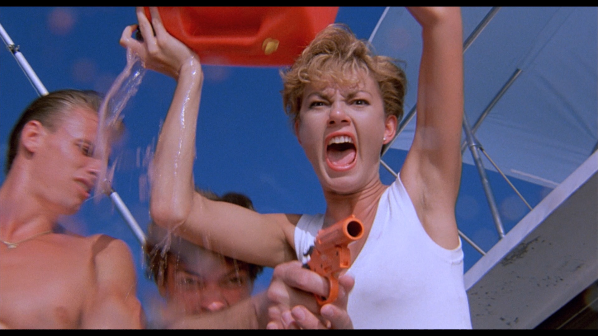 Complete with slapstick seal comedy, a pair of friendly dolphins named Cookie and Daisy, crotch kicking, beach bullies, bad bleach jobs, baffling music choices (including a fanfare swiped from Star Wars), and glaring line flubs, Cruel Jaws really must be seen to be believed. The fact that Castellari's film had already run into major legal trouble back in the '80s was apparently no deterrent here as Mattei and company double down on the intellectual property violations here, and not surprisingly, this ended up heading straight to video in the few countries willing to handle it like Japan, Germany, and Sweden. That said, this isn't just a cut and paste job as Mattei delivers some highly original thrills of his own including an outrageous gag involving a flare gun at the one-hour mark that would've brought down the house if this ever played theaters.