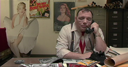 Having established itself as the premiere DVD label for Bettie/Betty Page loops, Cult Epics branched out to continue Bettie's legacy with their own first feature film, Bettie Page: Dark Angel, helmed by company head Nico B. Adopting a tactic similar to Ed Wood, the film focuses on a short period in Page's life rather than offering a comprehensive look at her entire life. The story begins in Florida as Bettie finishes a modeling job and says goodbye to her boyfriend, Armond (Maynard, star of the apparently abandoned "reality" film Games People Play), to jet back off to New York. There she embarks on a successful career as a bondage model thanks to her mentor, Irving Klaw (played by the memorably named "Dukey Flyswatter"), whose sister Paula (Henkin) serves as a sort of ringleader for the loops as well. Much of the running time consists of recreations of many Klaw spanking and bondage loops lost over the years (such as "Dominant Betty in Black Corselet") due to interference from