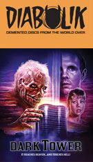 Seemingly everywhere on VHS from the late '80s into the early '90s without anyone actually talking about it at all, Dark Tower was one of the most recognizable titles from indie label Forum Home Video, who also gave the rental world titles like Scarecrows and Edge of the Axe. A very troubled production shot in Barcelona, the film's British and American co-financing wrangled by veteran producer Sandy Howard resulted in an odd revolving door of talent on its way to completion with the pseudonymous director "Ken Barnett" camouflaging the involvement of original director and co-writer Ken Wiederhorn (Shock Waves) and his replacement in the middle of shooting, Freddie Francis. With its weirdly overqualified cast and late period Spanish horror vibe, it's certainly an odd one and marks another previously obscure genre film unearthed for a new generation from Vinegar Syndrome on Blu-ray.